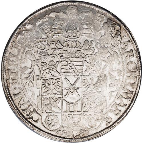 <B>Saxony. August Taler 1576, </B></I>D-9798, lusterous AU. A choice piece and well struck for this early issue. A half length armored bust with a sword over his shoulder is on the obverse and ornate plumed arms decorate the reverse.