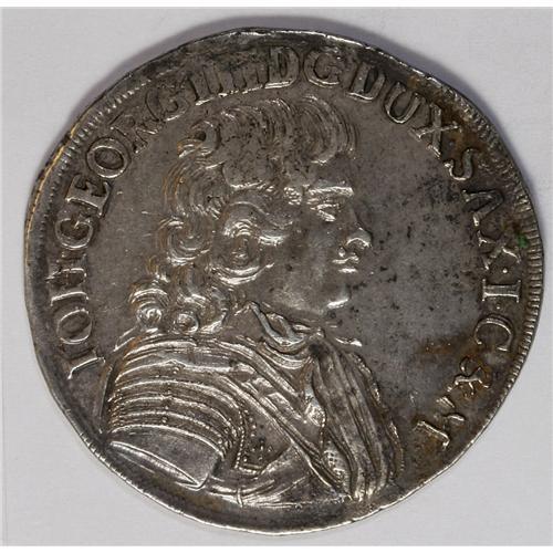 <B>Saxony. Johan Georg III 2/3 Taler 1682, </B></I>KM571, bold VF+, light gray patina, some oxidation traces, especially along the reverse edges.