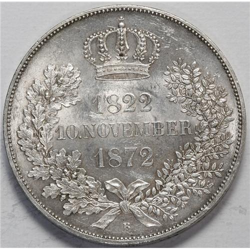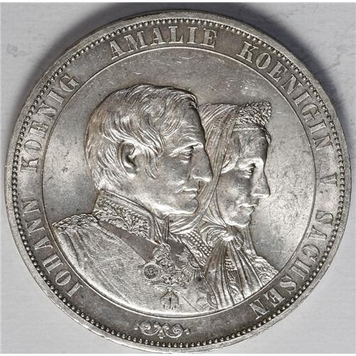 <B>Saxony. Johann 2 Taler 1872, </B></I>KM1231.1, lettered edge, fully lustrous AU-UNC, an attractive example of this commemorative struck for the golden wedding anniversary.
