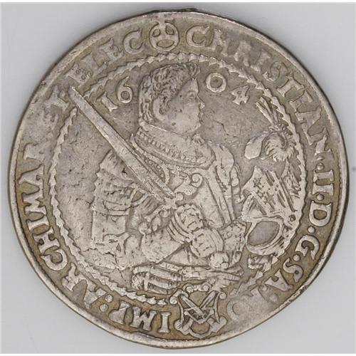 <B>Saxony. Taler pair including:</B></I> Christian II, Johann Georg I, and August 1604, KM24, Dav-7566, VF with mount mark at 12 o'clock; and a Johann Georg I 1626, KM132, Dav-7601, VF-XF details with light tooling in the fields and a mount mark at 12 o'clock. <B>A sold as is, no return lot.</B></I>