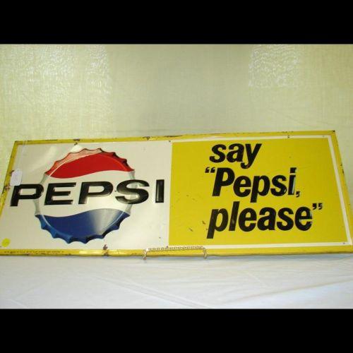 Say Pepsi Please Tin Sign Metal Sign measuring 11"x30" Good condition. Does have some dings.
