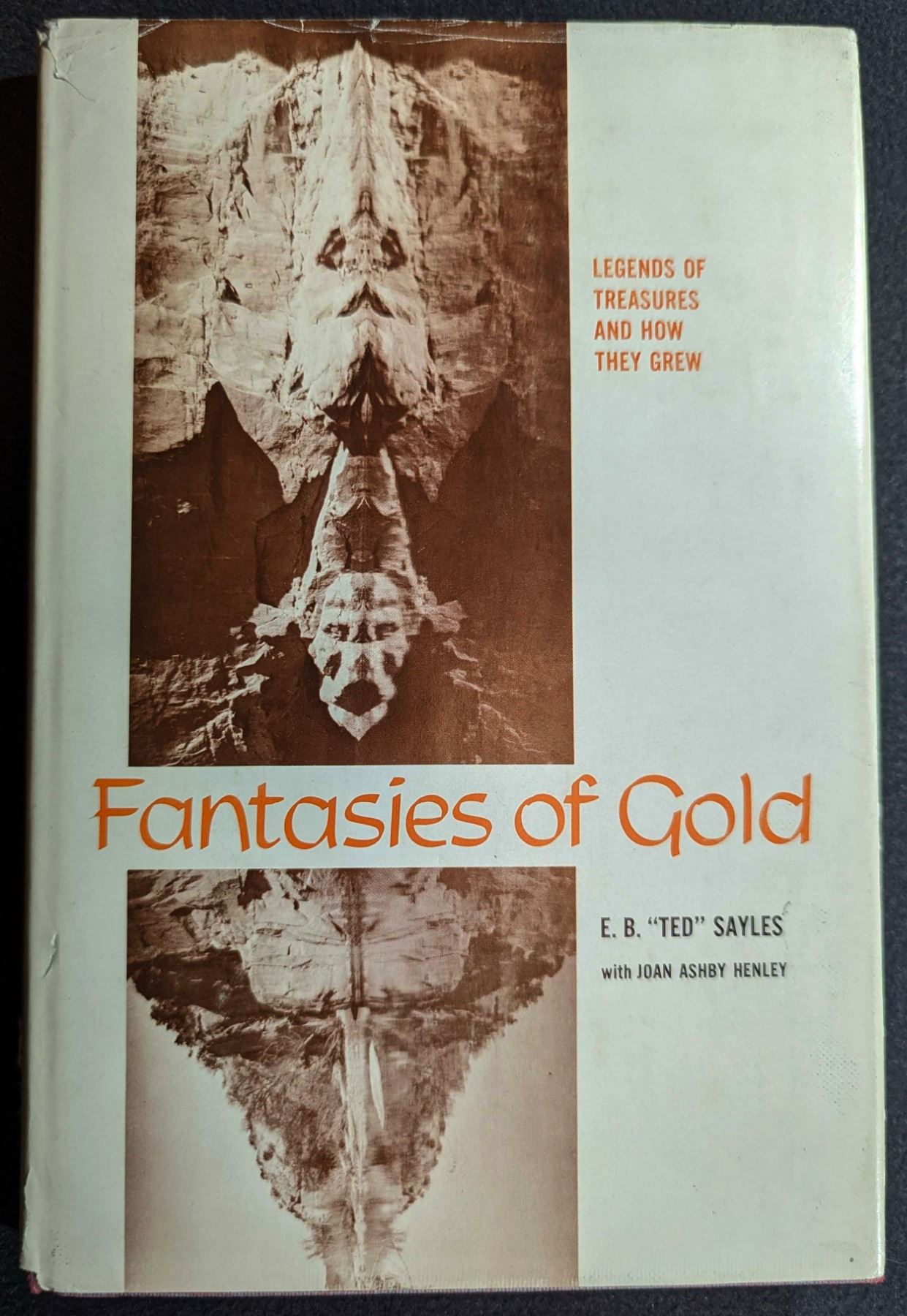 Sayles, E.B. 'Ted' with Joan Ashby Henley. FANTASIES OF GOLD. LEGENDS OF TREASURES AND HOW THEY GREW. The University of Arizona Press, Tucson. 1968. 8vo. (10), 135, (3) pages. Original purple cloth, gilt. Second printing. Mapped endpapers. Illustrated. Tables. Jacket chipped, Very Good. Book Fine. This book is a collection of tales of treasure hoards and lost mines as researched by the author. A scholarly examination of several well-known lost treasure legends. This book deserves to be much better known. Lot weight: 1 lbs 3oz. Subject(s): Buried Treasure, Lost Mines.