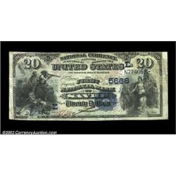 Sayre, PA - $20 1882 Date Back Fr. 555 FNB of Sayre Ch. # 5666Only six large size notes are reported from this Bradford County bank. This Second Charter Date Back is crisp and fully bright, and the cashier's signature is dark and bold (while the President's is gone). The top margin is a trifle tight at the top, but the other three margins are extra broad. Very Fine+. Important notice: We expect to be auctioning lots at the rate of 200-250 per hour. Sometimes eBay Premier live bid software cannot keep up with that pace, so we strongly recommend that you place a realistic proxy bid now as insurance to avoid disappointment. Also please note that all Heritage/CAA lots purchased through eBay Premier carry a 20% Buyer's Premium. Please make sure you read the Terms and Conditions.