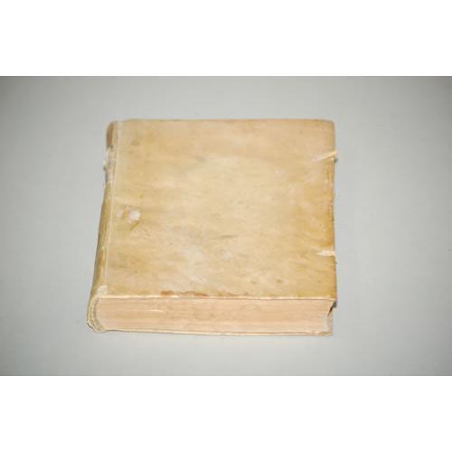Sbrozzio Iacobo (Sbrozzius, Jacobus). De Vicarii Episcopi Officio. Et Potestate Tractatus.... Venetiis: Apud Robertum Meiettum, 1606. 8vo - over 7¾" - 9¾" tall. Hard Cover. Good condition. [8] 370pp, [76], bound in vellum, with binding and hinges tight. Title in red & black with vignette, flourished initials, double column format. Small ink stamp inside back cover, lacks vellum ties, backstrip peeling. BISHOPS (CANON LAW).
