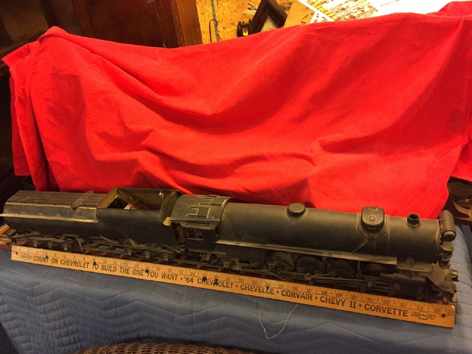 Handmade replica scale model steam train, actually runs, made to scale. Actual working model would make a great addition to a train collector's room, great on a collector's cabinet. Real work of art. Original maker would run train around the outside of his home.