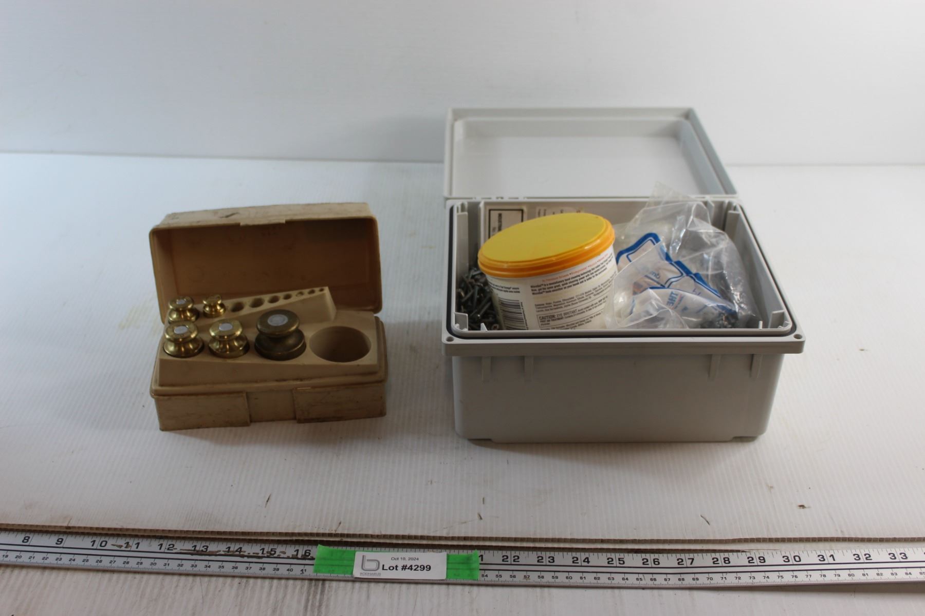 Scale Weights Set, Plastic Box and Assorted Hardware