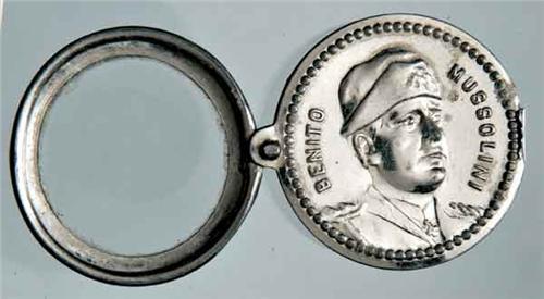 Scales - Italy - Ae - Italia - Anni '30 del Secolo XX - Lente di ingrandimento a scomparsa entro custodia circolare - - - Sui lati della custodia rispettivamente l'effigie di Benito Mussolini e un fascio littorio - Rara curiosità