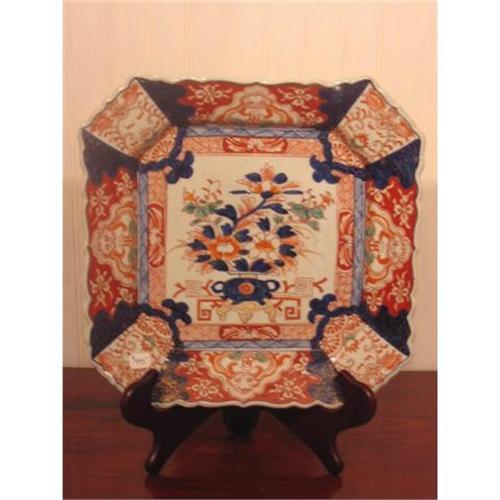 Great square shape with a scalloped edge - unusual for Imari to find this size and shape. Bold pattern in the traditinal Imari colors. This is a great piece of export for the collector or designer.