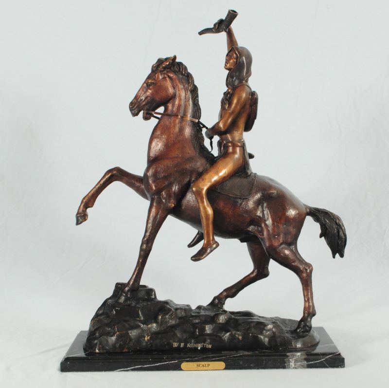 "Scalp" Bronze by Frederic Remington. Measures 9" x 20" x 27" Contemporary