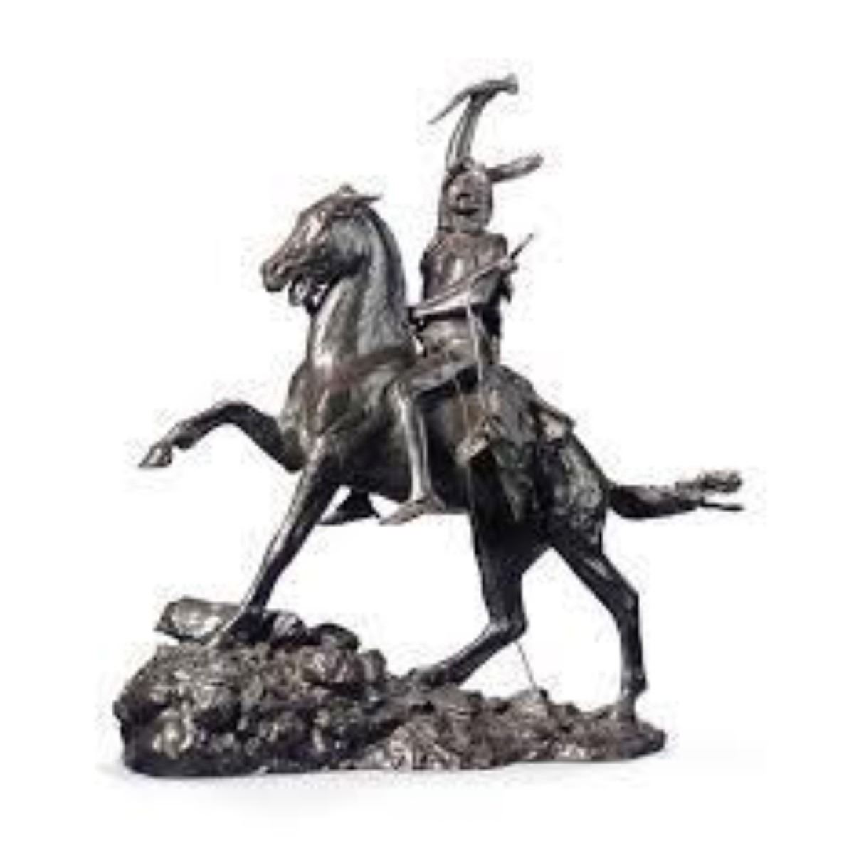 Regular 25" H x 20" L - This is not an original Frederic Remington sculpture for if it was, it would be worth a great fortune. This is a masterful lost-wax bronze molded sculpture masterfully recreated in the Frederic Remington style. There are many steps in this intricate process. If interested, you may read about this process here: https://en.wikipedia.org/wiki/Lost-wax_casting