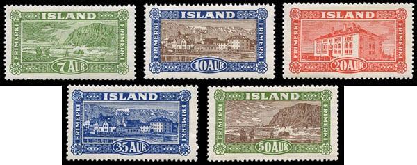 Scandinavia: Iceland, 1925, Views complete. Scott 144-148. Michel 114-118. Facit 168-172, VF