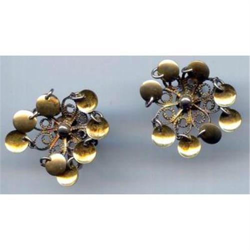 <table width="100%" border="0" cellspacing="0" cellpadding="4"><tr><td><em> </em></td></tr><tr> <td width="100%"> I believe these are called Scandinavian Solje gilded earrings. I believe the brooch also listed is a set to these. These European silver screw-back style earrings measure 1" tall. They are marked on the back 830S for European Silver. They are in excellent condition, with a gold wash on the spoon dangles. </td></tr><tr> <td> </td></tr><tr> <td>Reference #: fjster80</td></tr><tr><td>Condition:good</td></tr><tr><td>Year:1940s-50s</td></tr><tr><td>Title:Scandinavia Solje Silver Screwback Earrings</td></tr><tr><td>Style:screwback</td></tr><tr><td>Materials:silver</td></tr><tr><td>Location:Missoula Montana</td></tr></table>