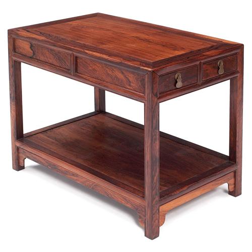Scandinavian Modern end table, rosewood, maker unknown, rectangular form with two drawers with original brass pulls over a lower shelf, beautifully made, unmarked, original finish, 18"w x 30.25"d x 22"h, excellent condiition