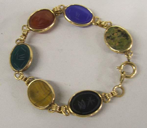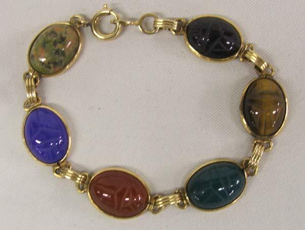 Scarab Etched Stone Link Bracelet. Measures approx. 7.5''L, stones measure approx. .5''L. Buyers Pay Actual Shipping and Handling Charges(see terms and conditions for more information).