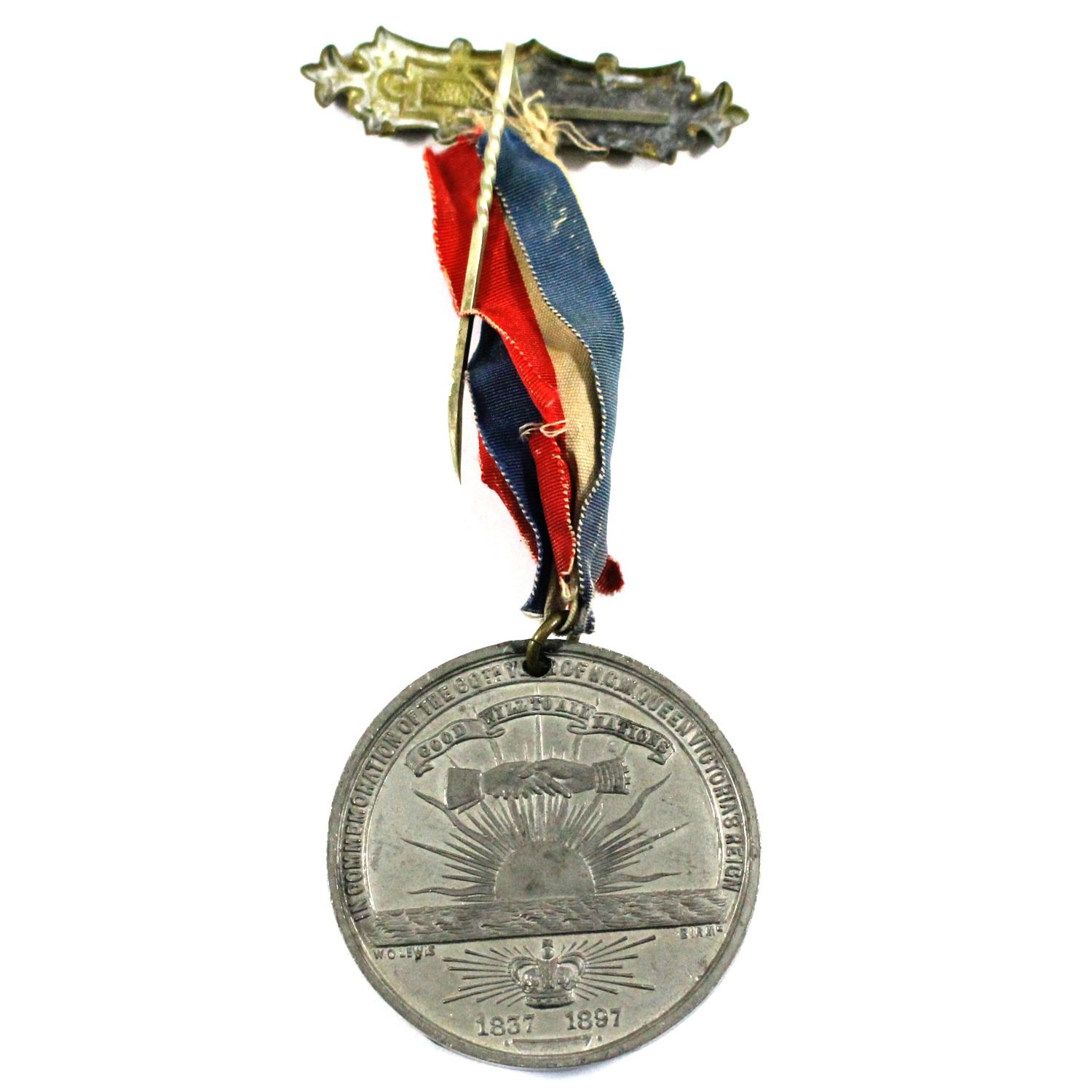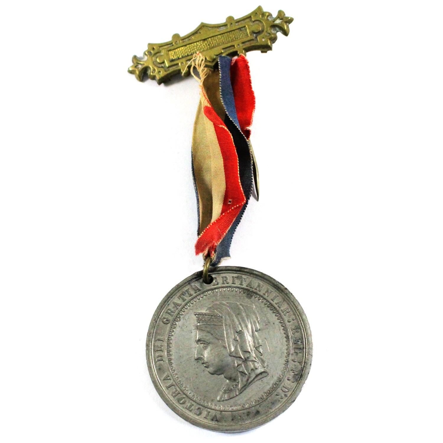 Scarce! 1837-1897 Queen Victoria 60th Anniversary Medallion with pin and Ribbon (ribbon is worn).