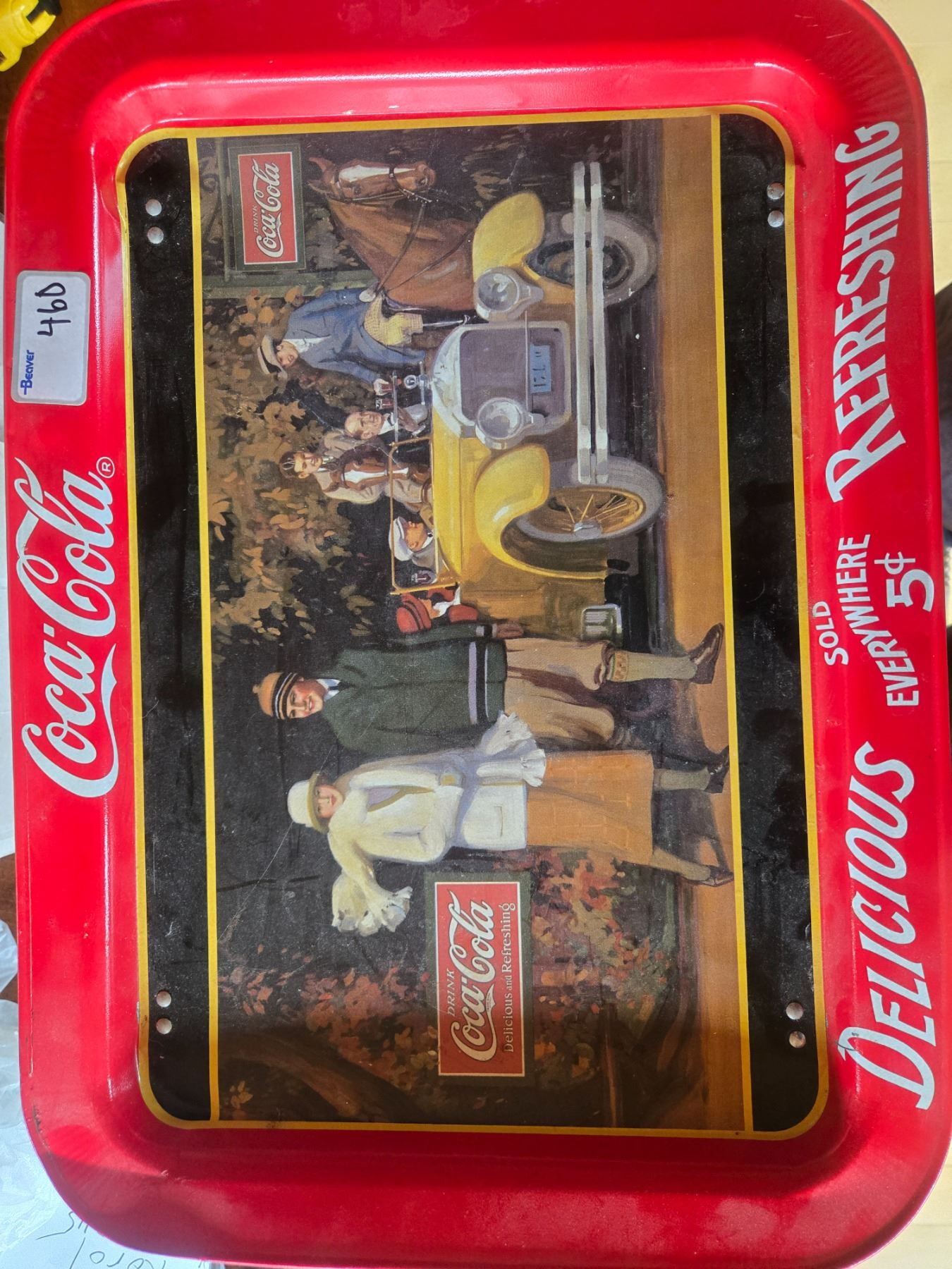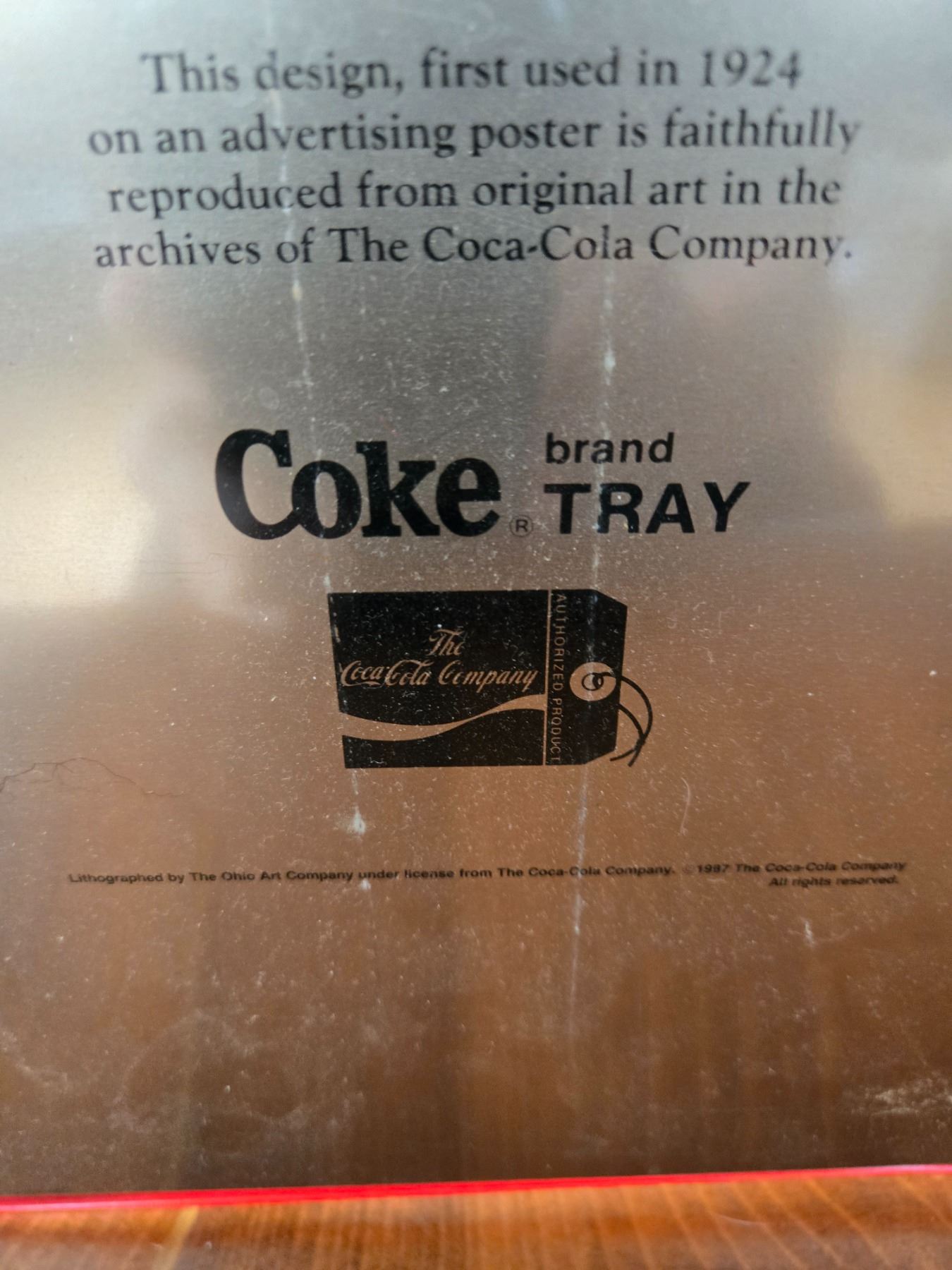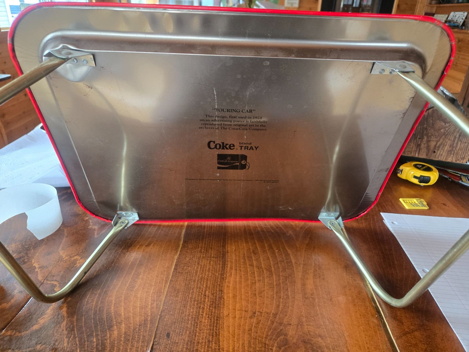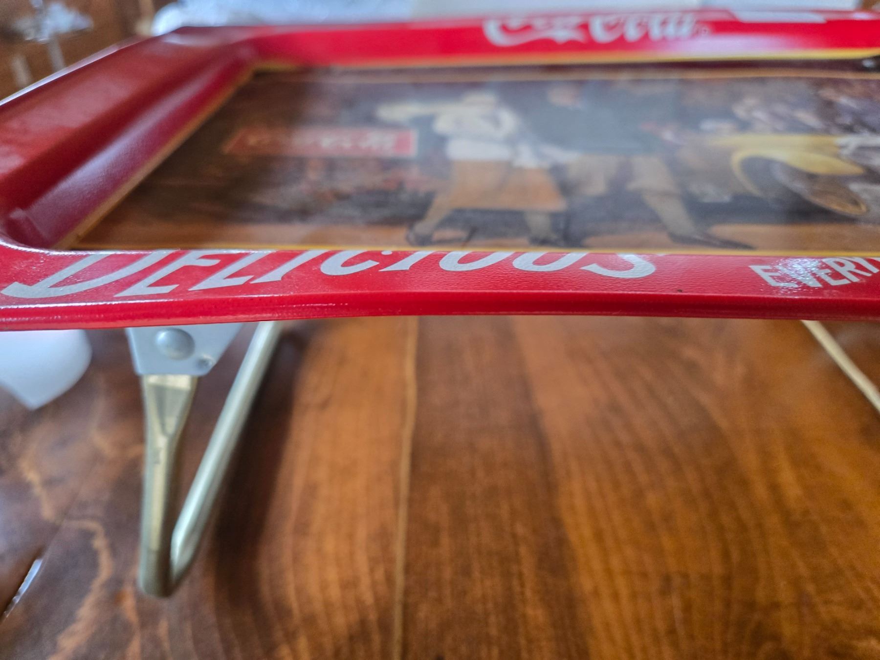 Scarce 1987 coca-cola serving tray original w/ folding legs 17" inx 12"in great graphics