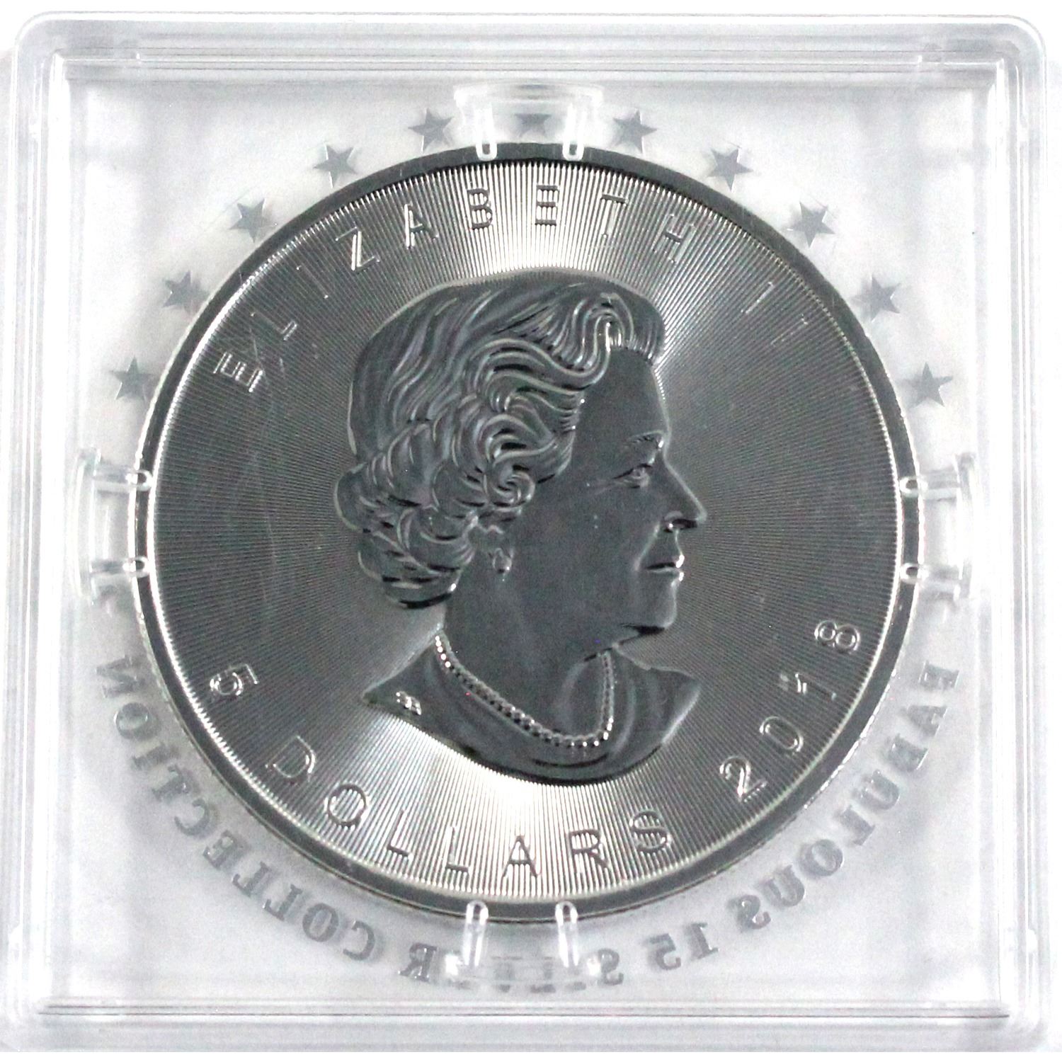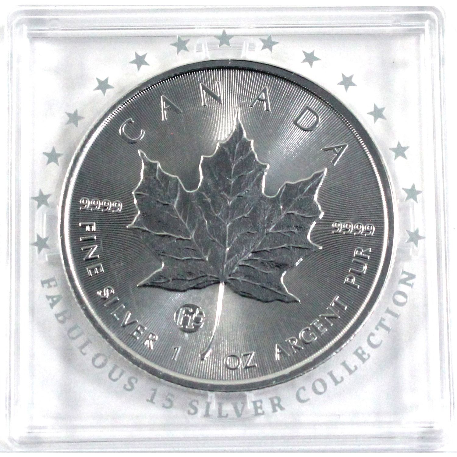 Scarce! 2018 Canada 1oz F15 Privy .9999 Fine Silver Maple Leaf in Fabulous 15 Square Capsule (Scratched capsule). TAX Exempt