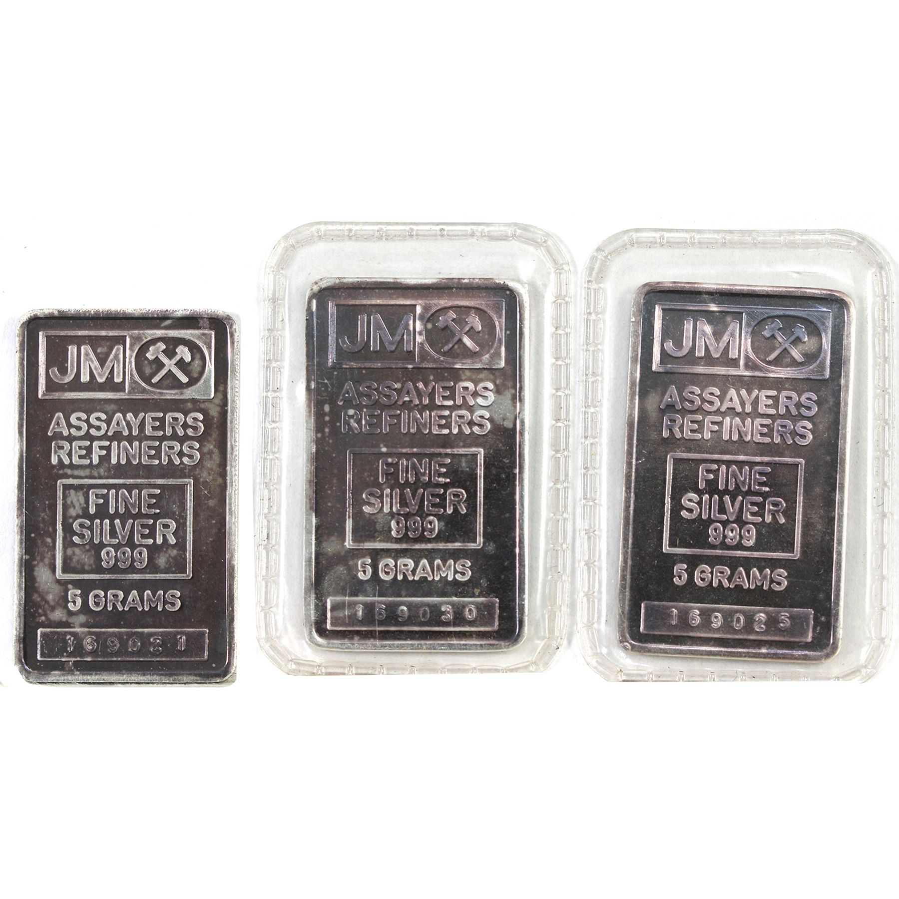 Scarce! 3x Johnson Matthey 5 Gram Silver Bars. Circa 1981 US variation. (Tax Exempt)