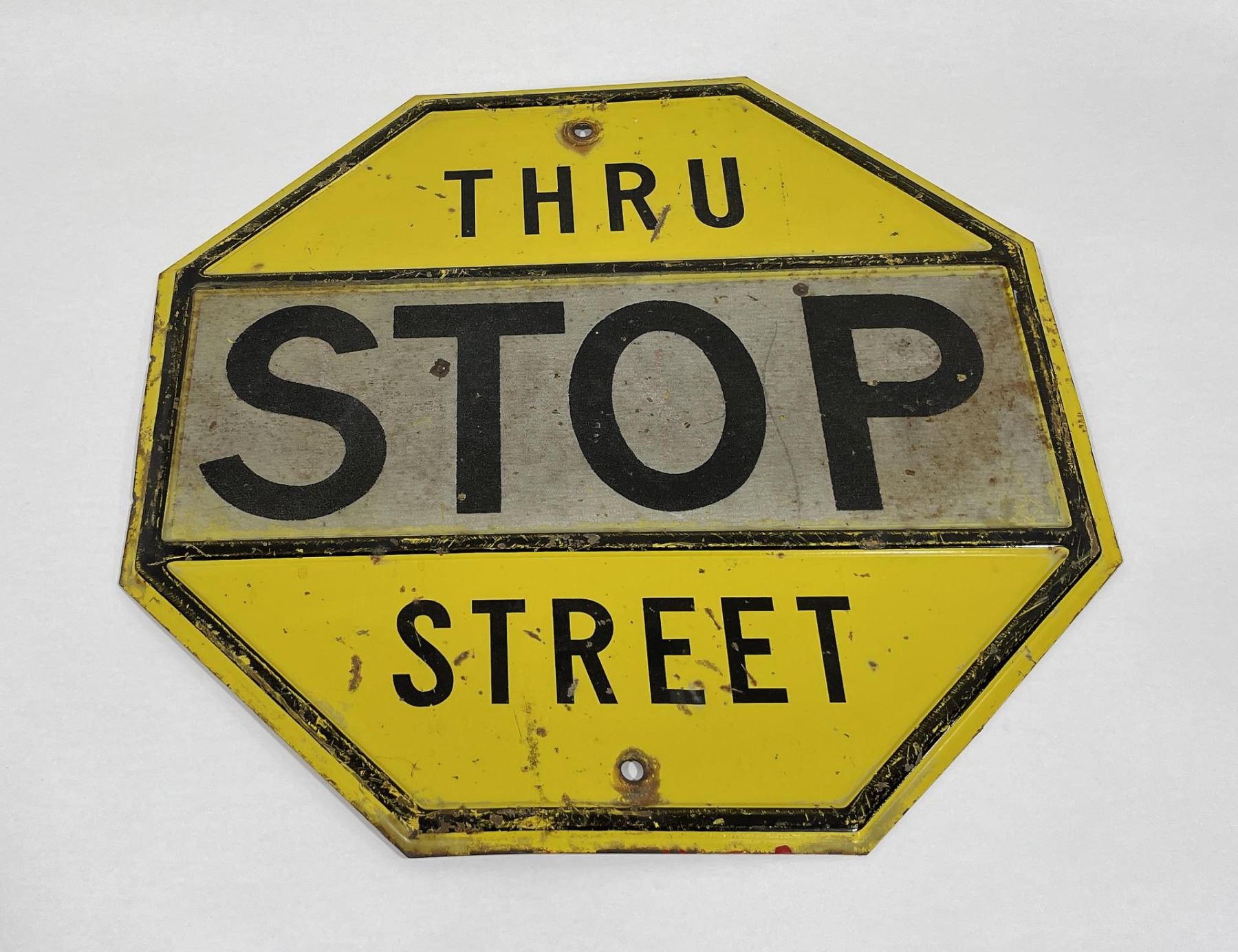 Nice old sign. Reflective center. Seldom seen variant. 18" by 18".