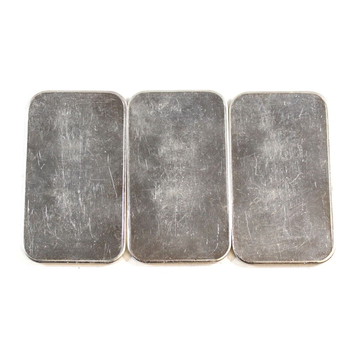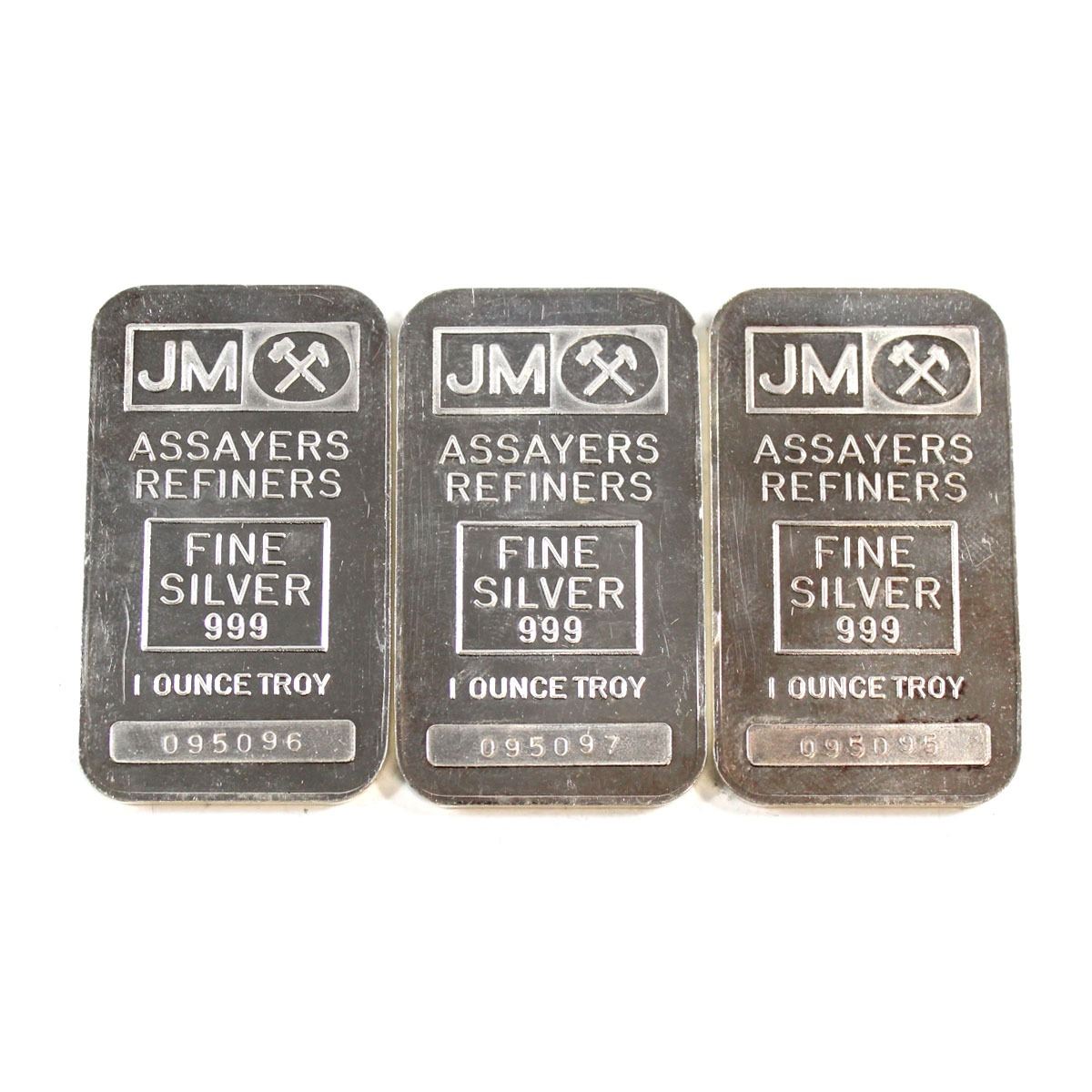 Scarce Consecutive Johnson Matthey 1oz Fine Silver Bars with 'Blank' Reverse (Tax Exempt). You will receive serial #'s 095095, 095096, 095097. 3pcs.