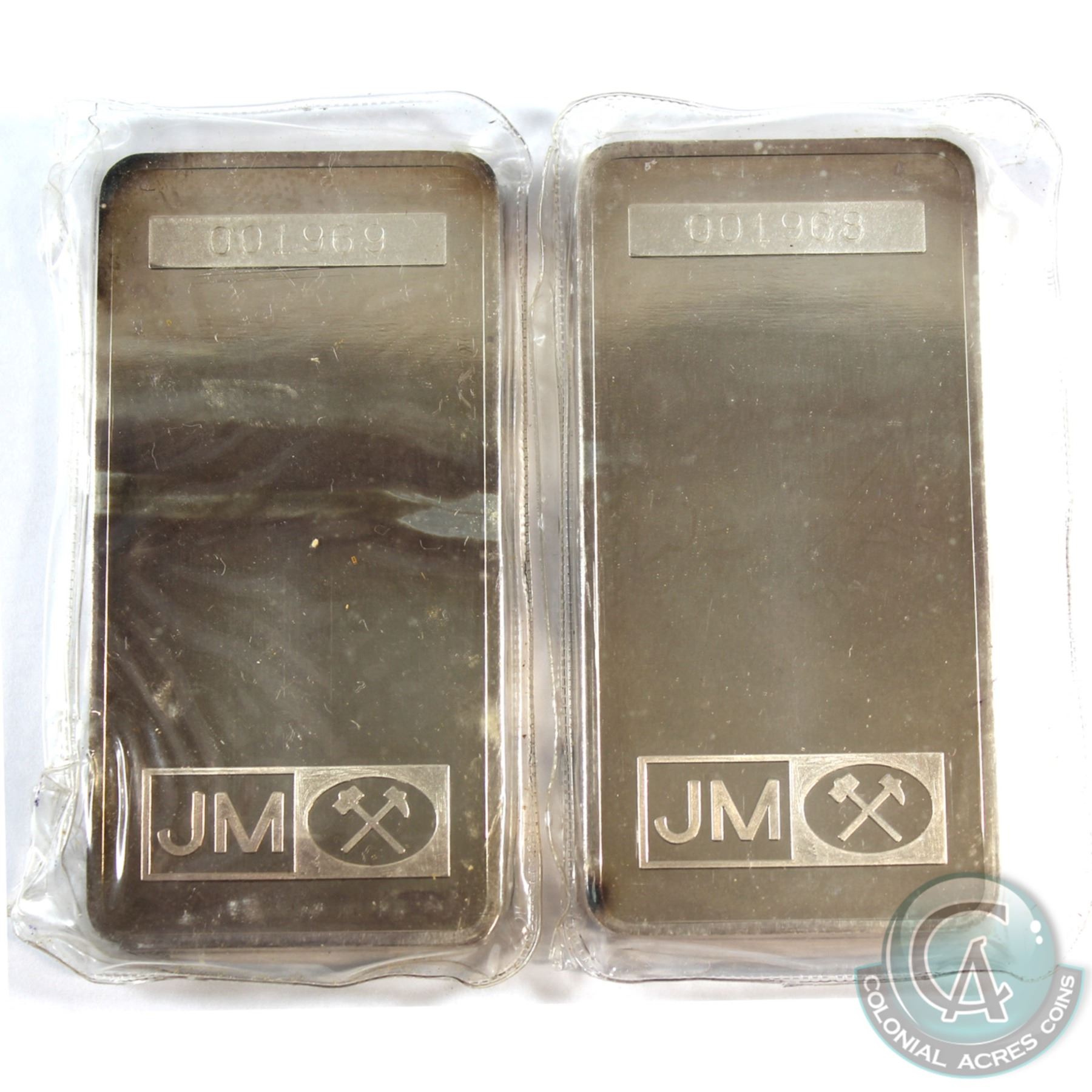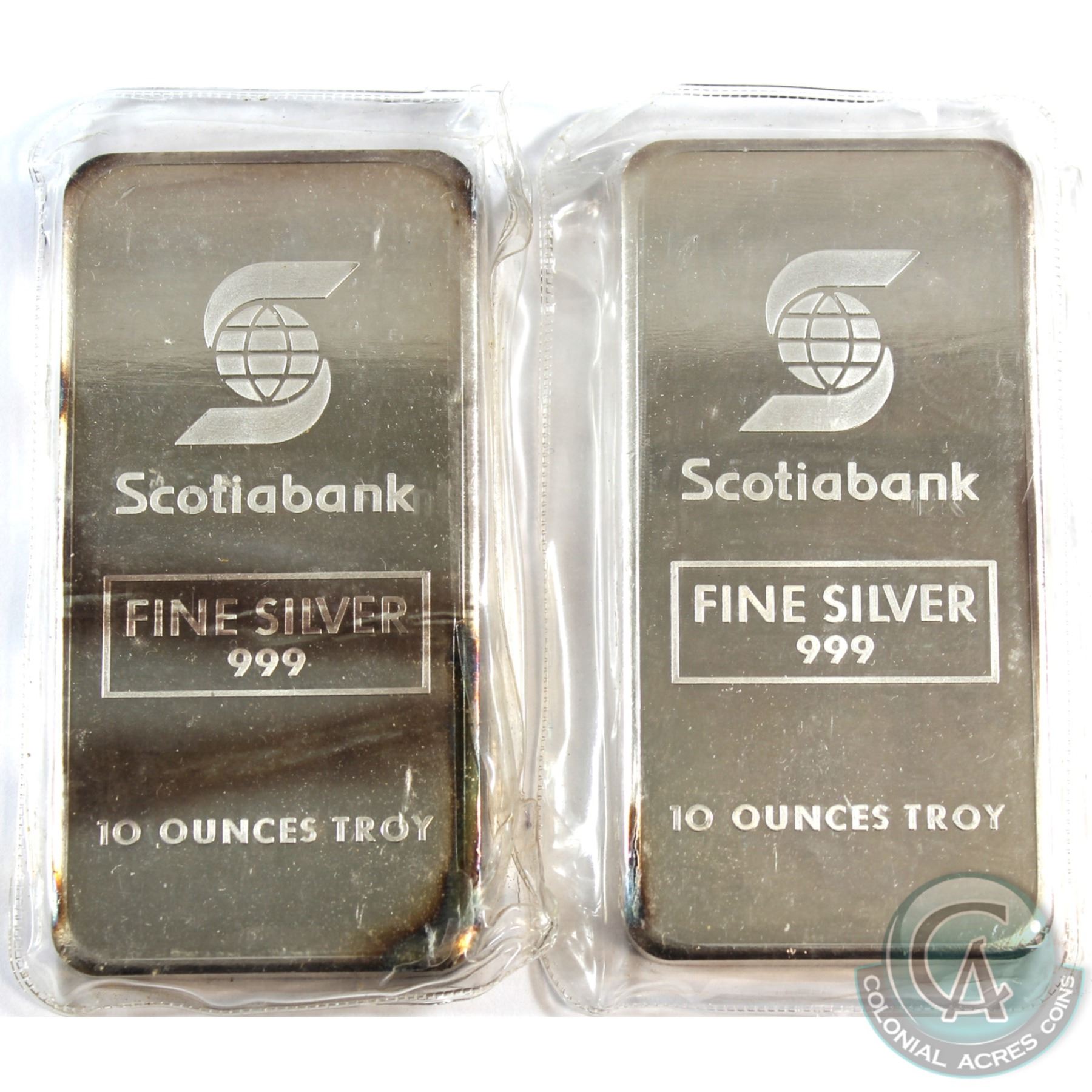 Scarce Consecutive Scotiabank 10oz Fine Silver Bars (TAX Exempt). Serial # 001968, #001969. 10oz example produced by Johnson Matthey, (United States) for Scotiabank. 2pcs.
