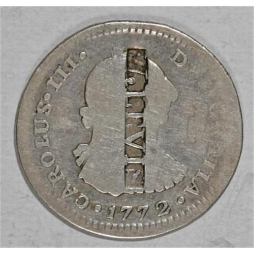 <B>Scarce Counterstamp, W. Levis, Philadelphia Merchant.</B></I> This well-known counterstamp is listed in Rulau as HT-909 and Brunk as P-314. The host coin is a scarce Columbian one real dated 1772P JS, listed as KM-46.2. it is believed that Levis was a silversmith in the Philadelphia area in and around the 1800s.<BR><BR><b>Shipping:</b> Coins & Currency (<a target="_blank" href="http://www.heritageauctions.com/common/shipping.php">view shipping information</a>)
