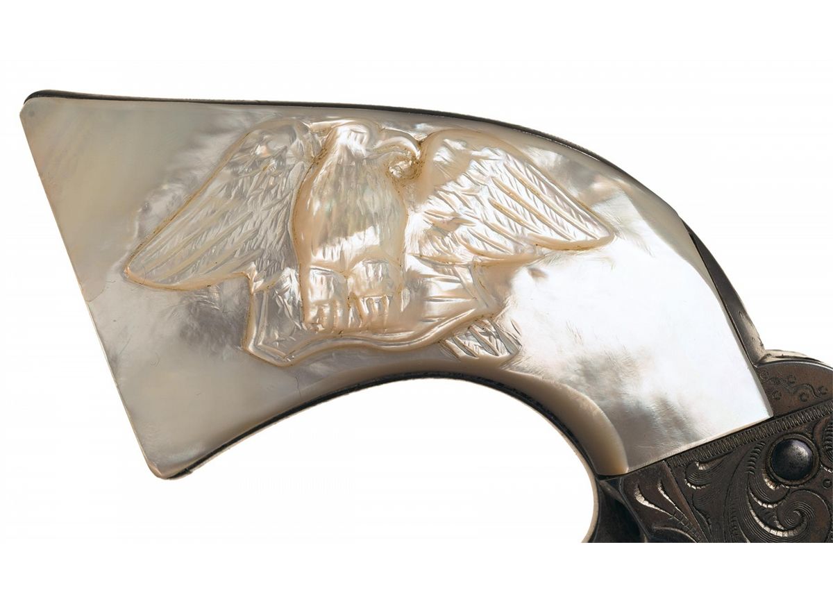 Scarce Documented Factory Engraved Black Powder Colt Single Action Army Revolver with Factory Letter and Magnificent Relief Carved American Eagle Pearl Grips