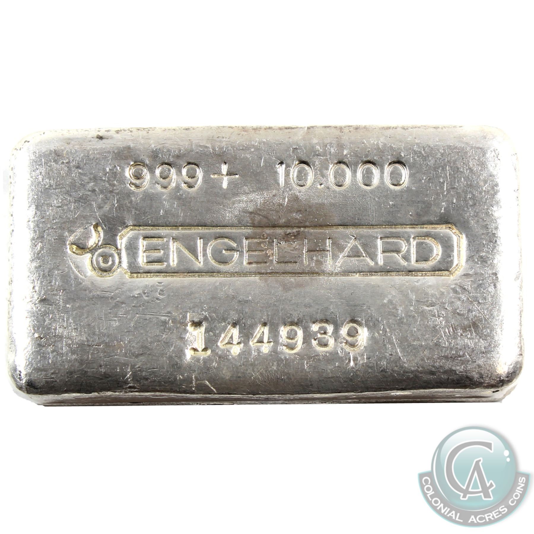 Scarce Engelhard 10oz Fine Silver '3rd Series' Bar (TAX Exempt). Serial # 144939.