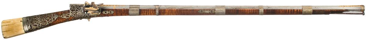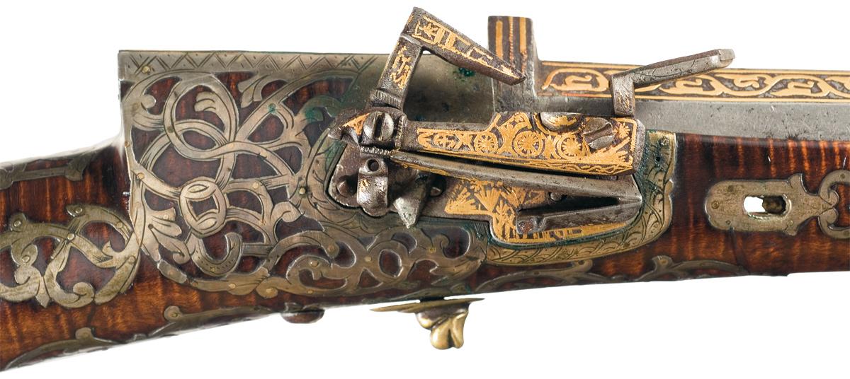 Scarce Gold Inlaid Miquelet, with Elaborate Silver Overlaid Stock and Unique Ivory Buttstock