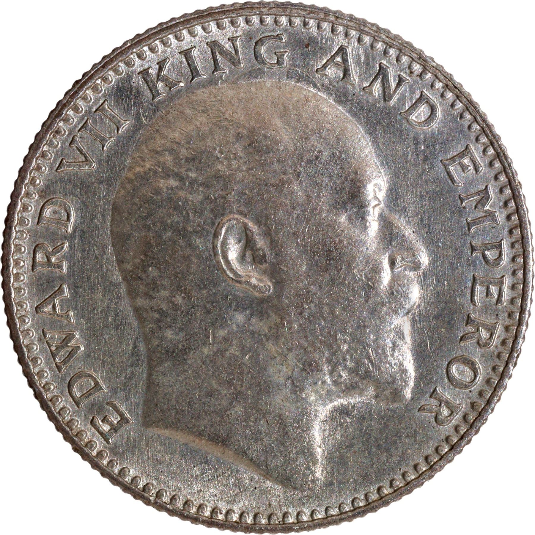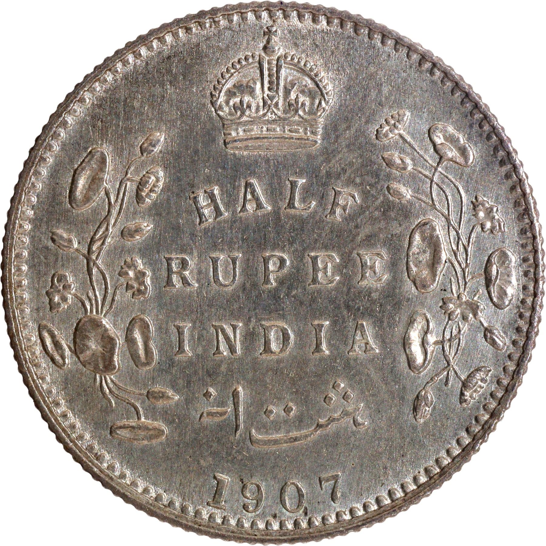 1907, King Edward VII, Silver ½ Rupee, Bombay Mint, B incused & dot, (PR # 316/GK # 965), ghost image visible, bold strike, choice quality, AU, Scarce in this grade.