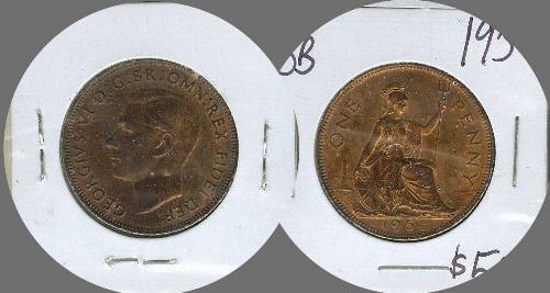 Scarce Great Britain 1951 Penny Unc; Rare coin, very low mintage, retails $50