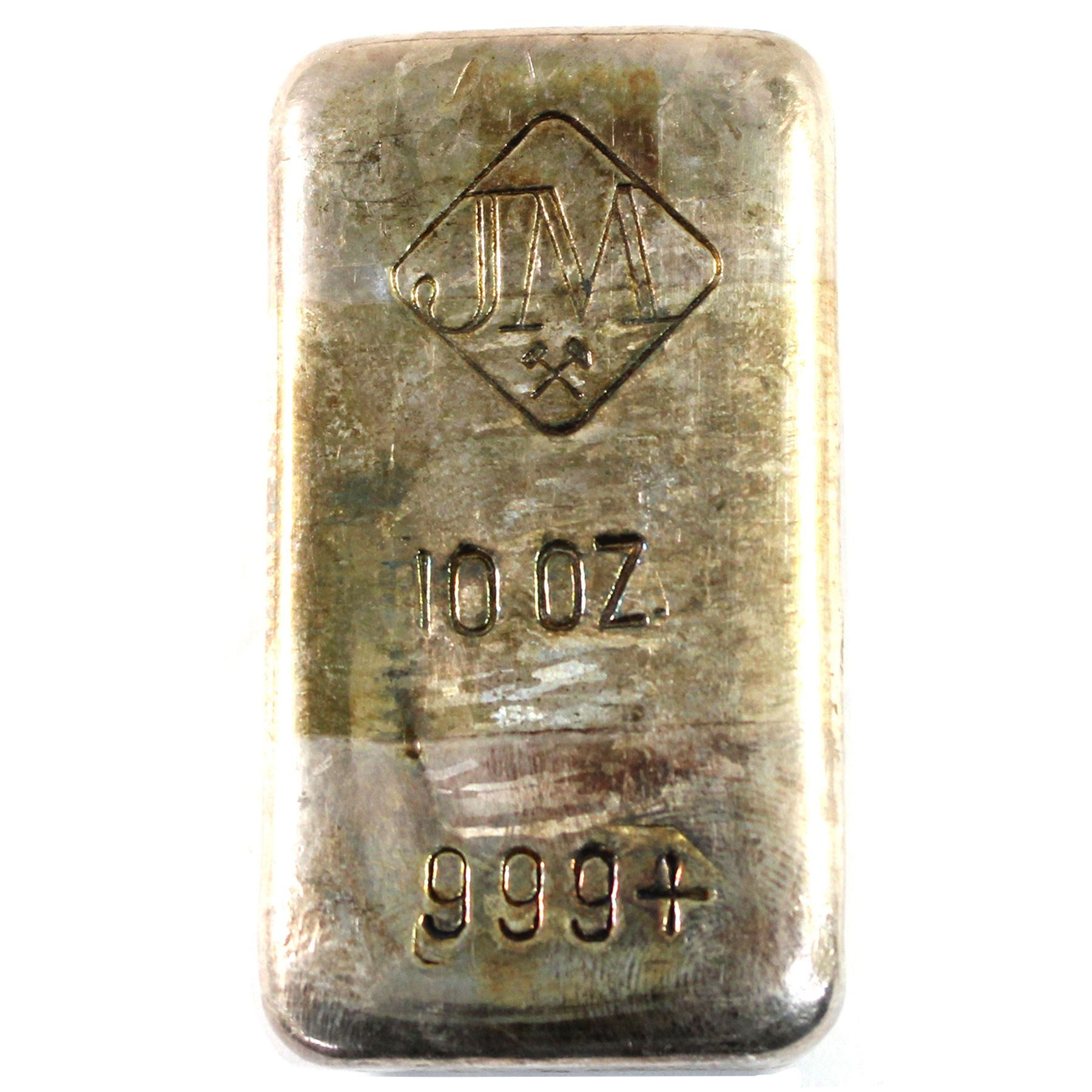 Scarce! Johnson Matthey 10oz Fine Silver Bar 'Large Logo' with 'Wide Spaced 999' (TAX Exempt).