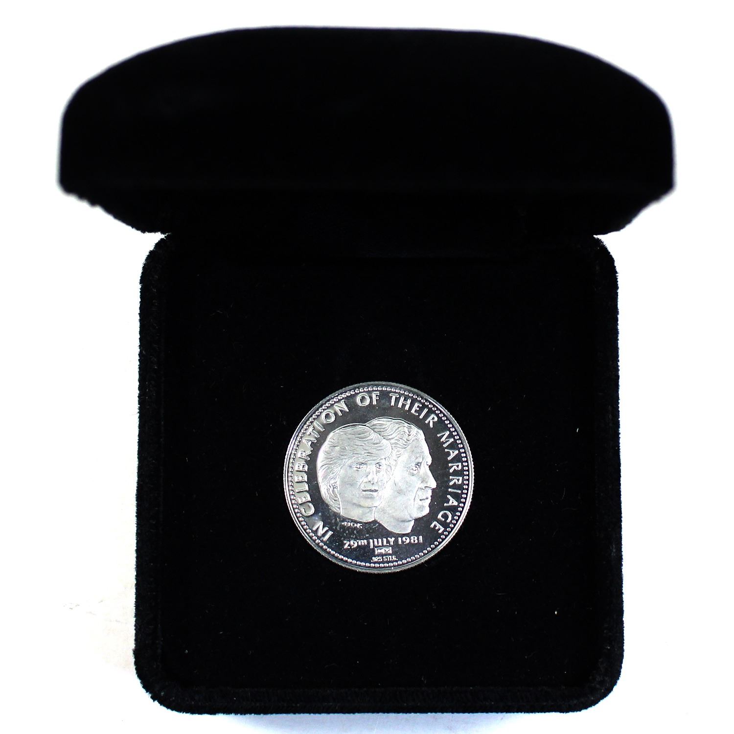 Scarce! Johnson Matthey 1981 In Celebration of Their Marriage-HRH The Prince of Wales & Lady Diana Spencer 11g Sterling Silver Round in Original Presentation Case. Light golden hues throughout