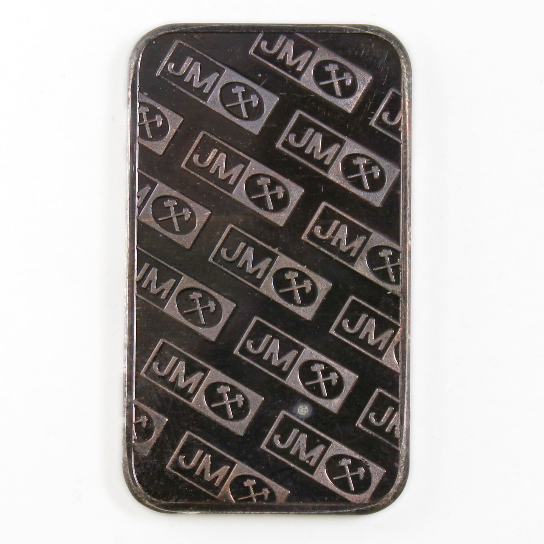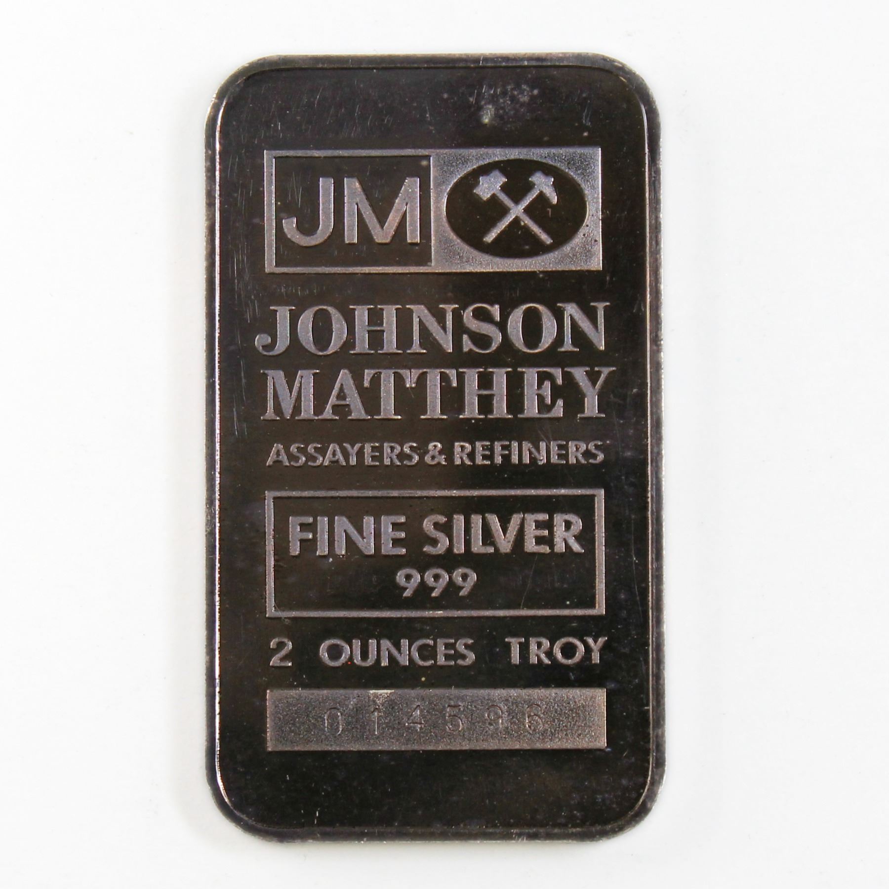 Scarce Johnson Matthey 2oz Fine Silver Bar with JM Logo Reverse (Tax Exempt). Serial # 014596