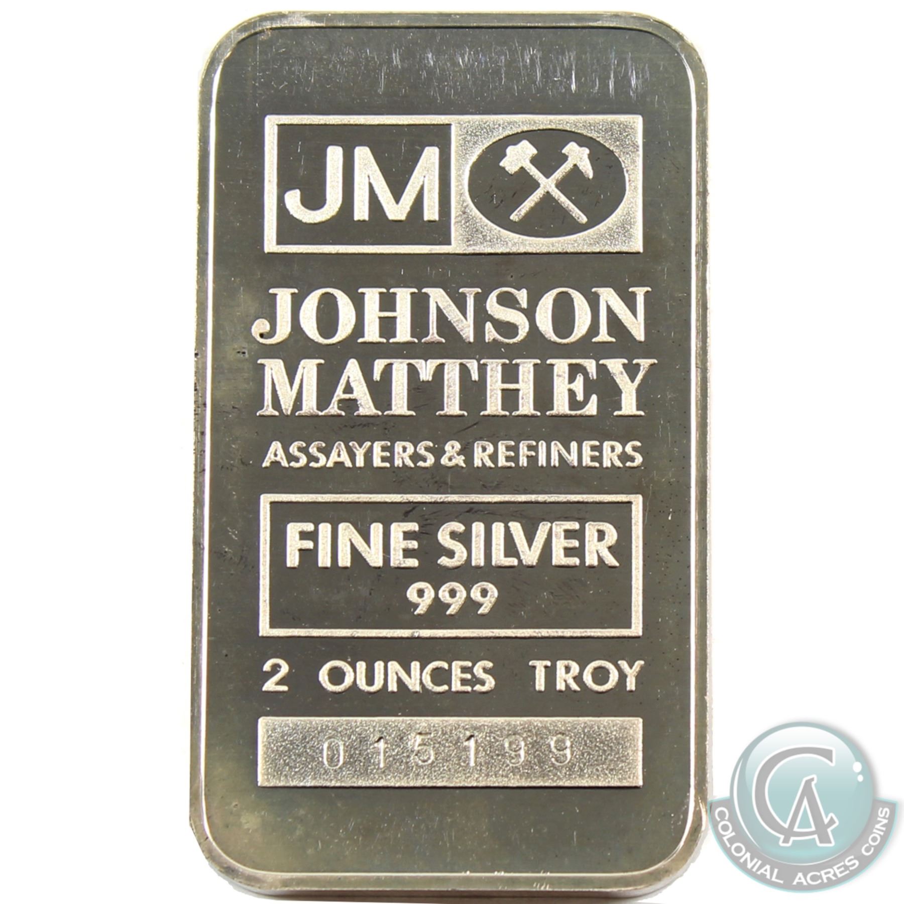 Scarce Johnson Matthey 2oz Fine Silver Bar with JM Logo Reverse (Tax Exempt). Serial #015323