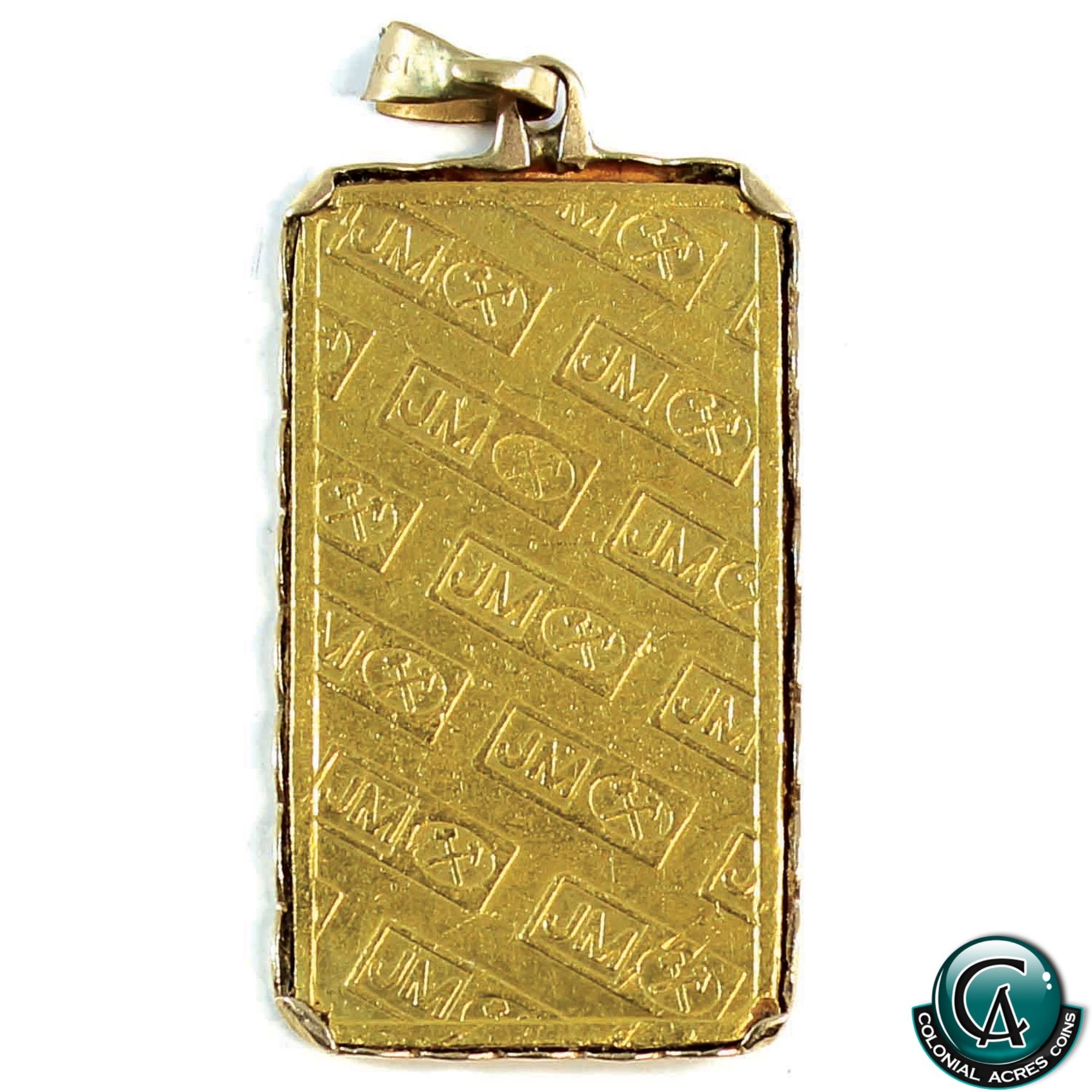 Scarce Johnson Matthey 5gram Fine Gold Bar with JM Logo Reverse in 10K Bezel (Tax Exempt). Serial #014509.
