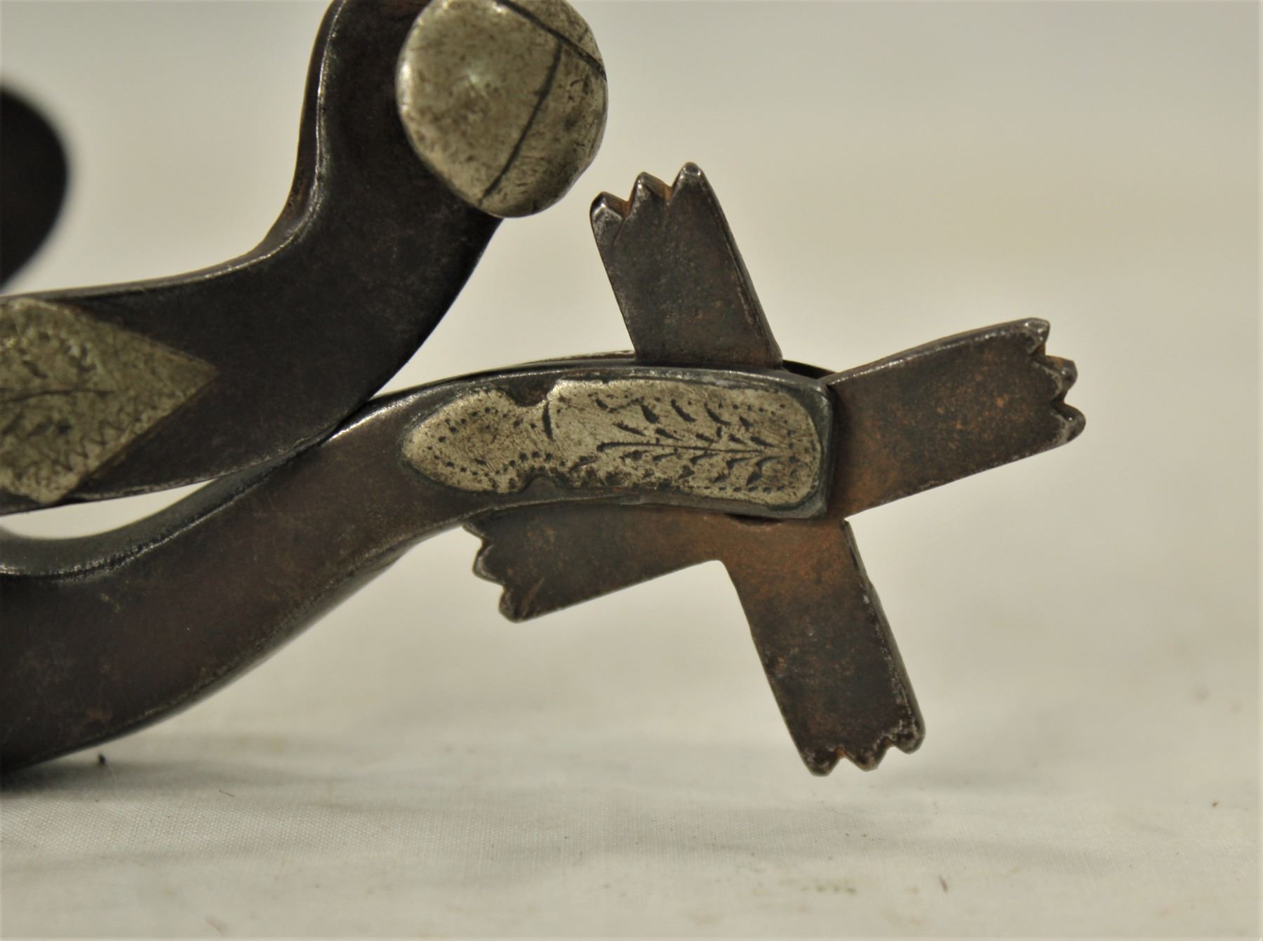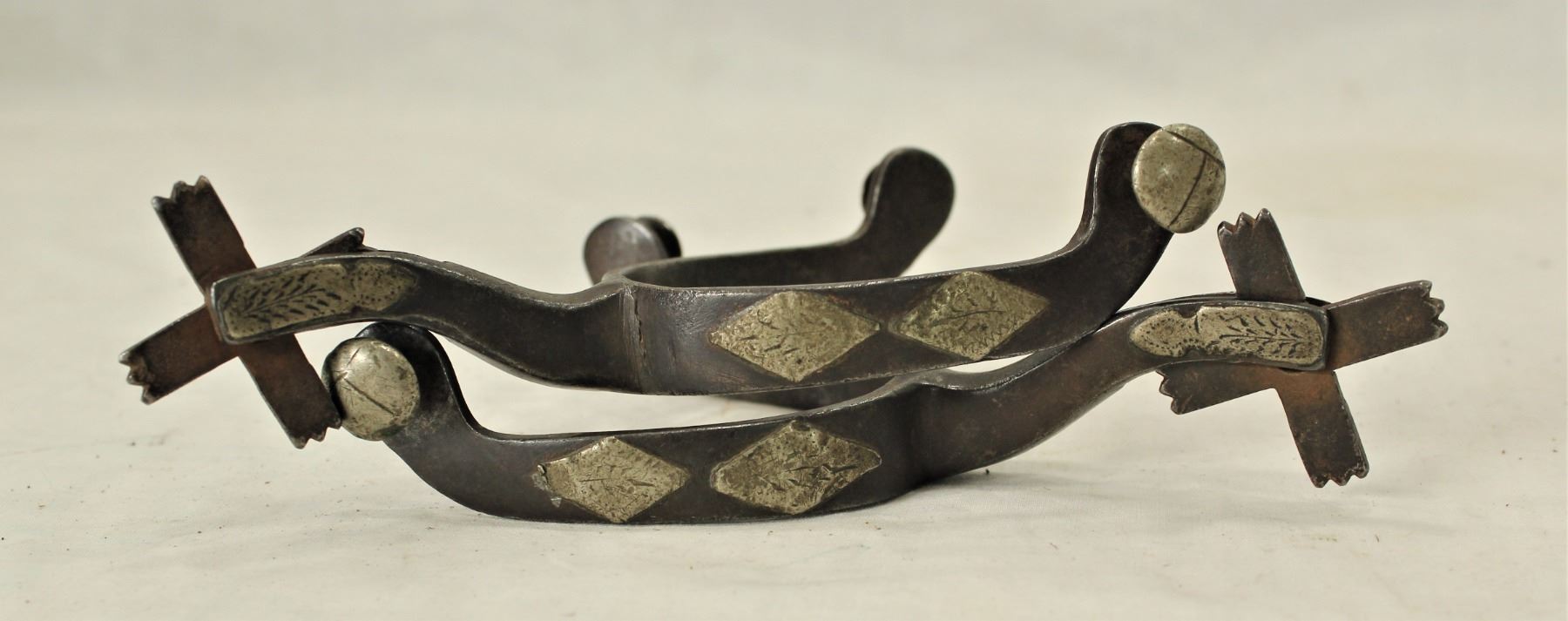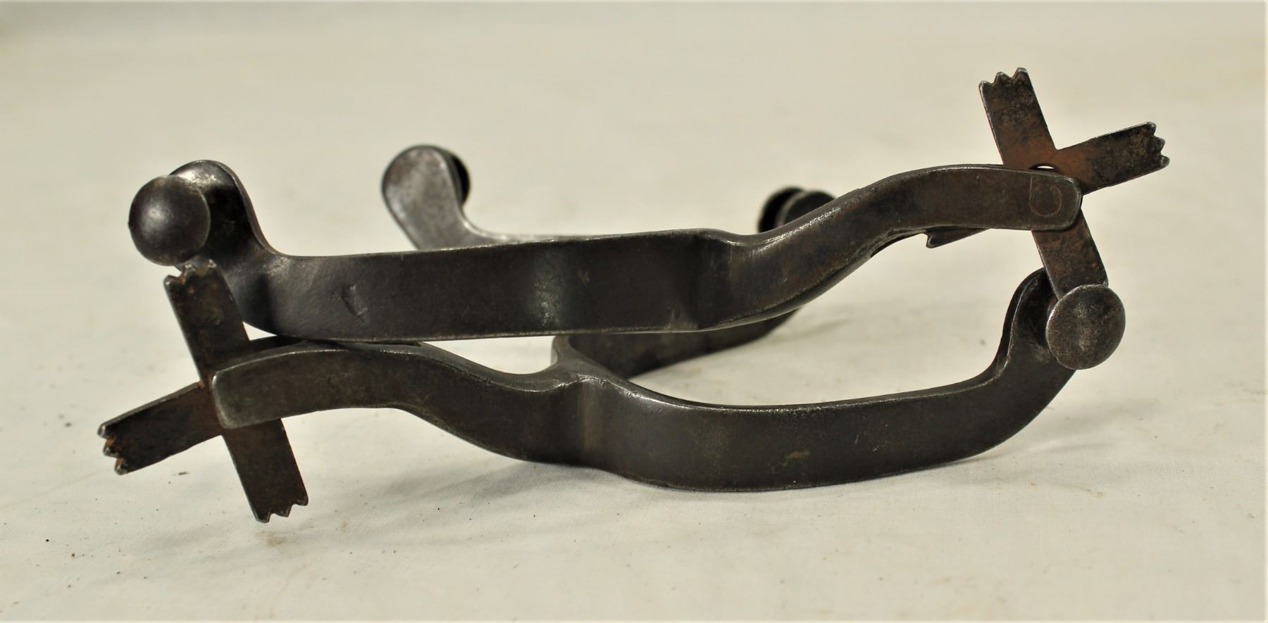 Very hard to find #14 pattern spurs, single mounted with 4-point rowels with sawtooth ends.