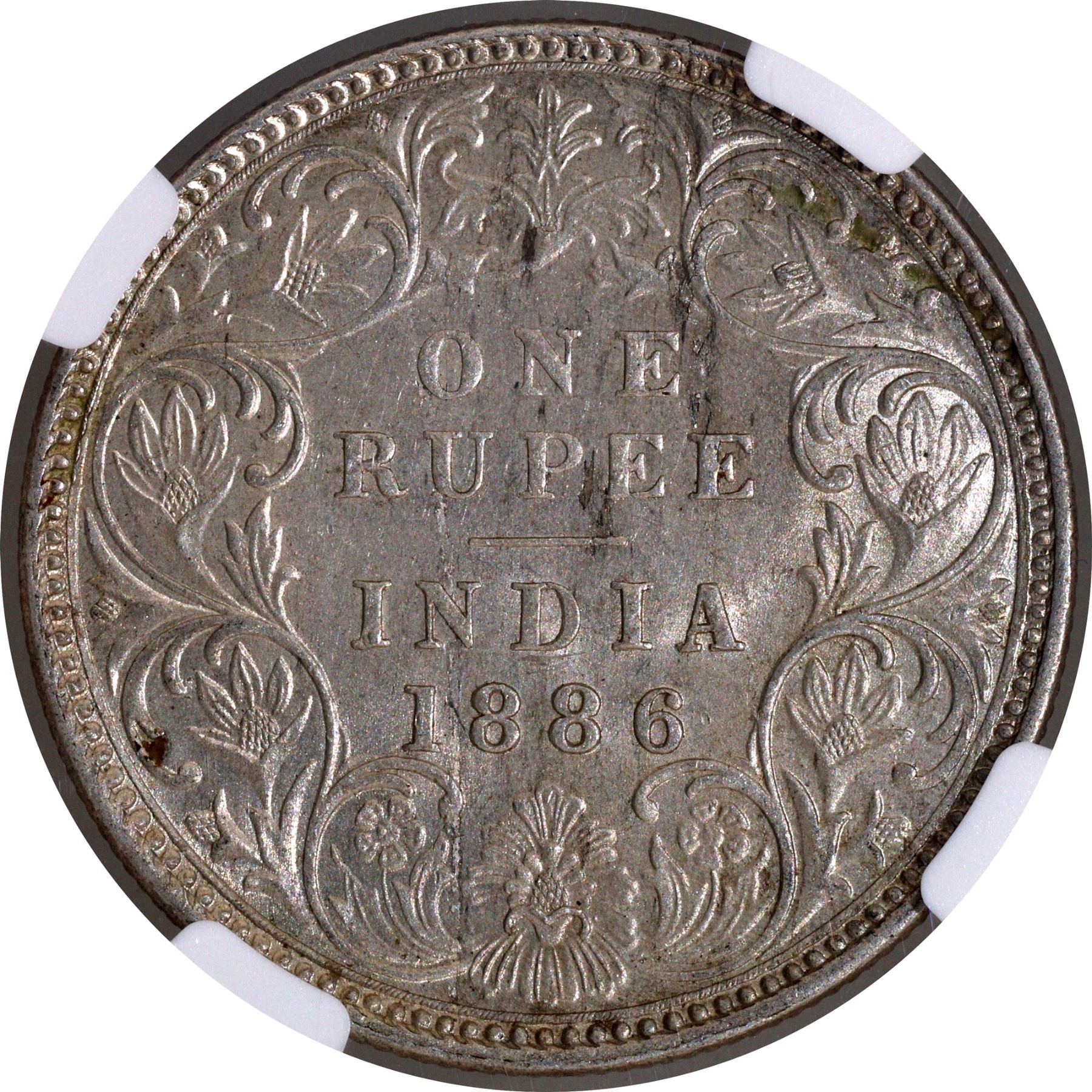 1886, Victoria Empress, Silver Rupee, Bombay Mint, C2/I/B incused, some lamination error visible at obverse, (PR # 171/GK # 523), graded & slabbed by NGC as MS 61, Scarce.