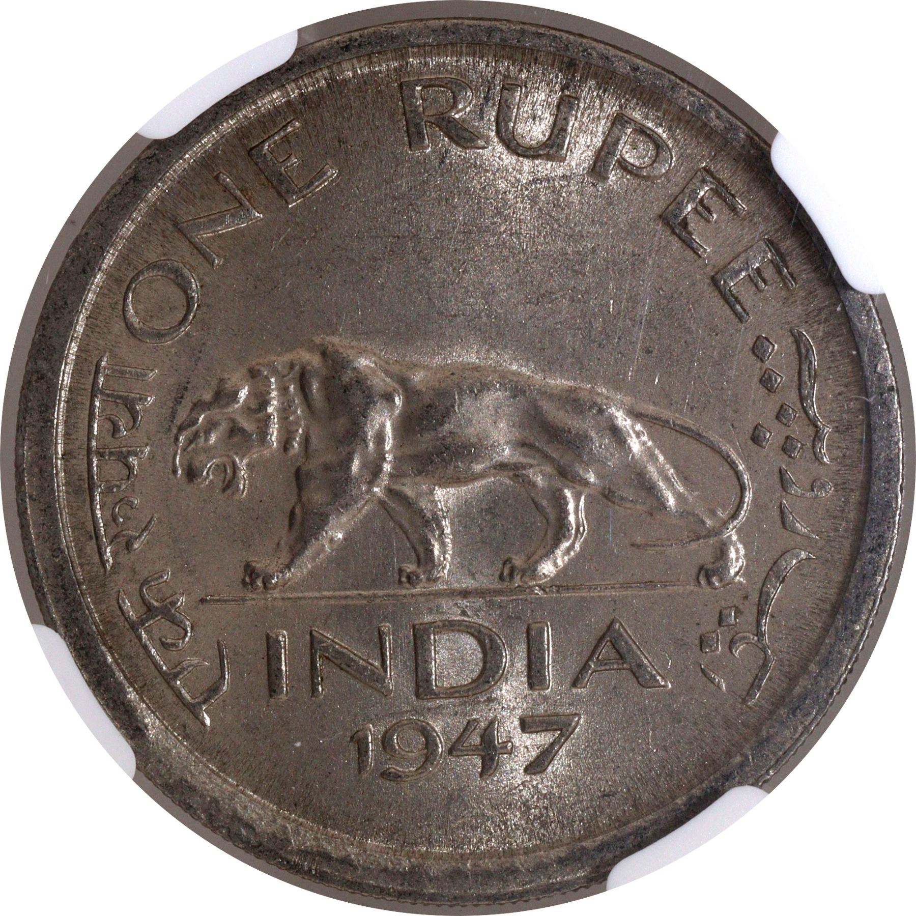 1947, King George VI, Nickel Rupee, Lahore Mint, E/IV/no mm, (PR # 864/GK # 1293), graded & slabbed by NGC as MS 63, Scarce in this grade.