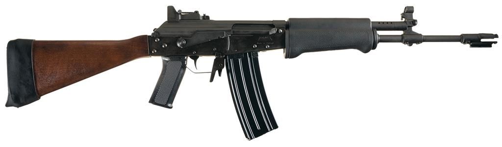 Manufactured in the 1971-1973 timeframe. Hooded post front sight with flip-up night dot and a 600-meter tangent peep sight installed on the rear of the dust cover. Fitted with a three-prong "wirecutter" flash hider with integral bayonet lug, 2-position dust cover safety, extended magazine release paddle, checkered forearm, pistol grip and a hardwood buttstock with slip-on recoil pad.