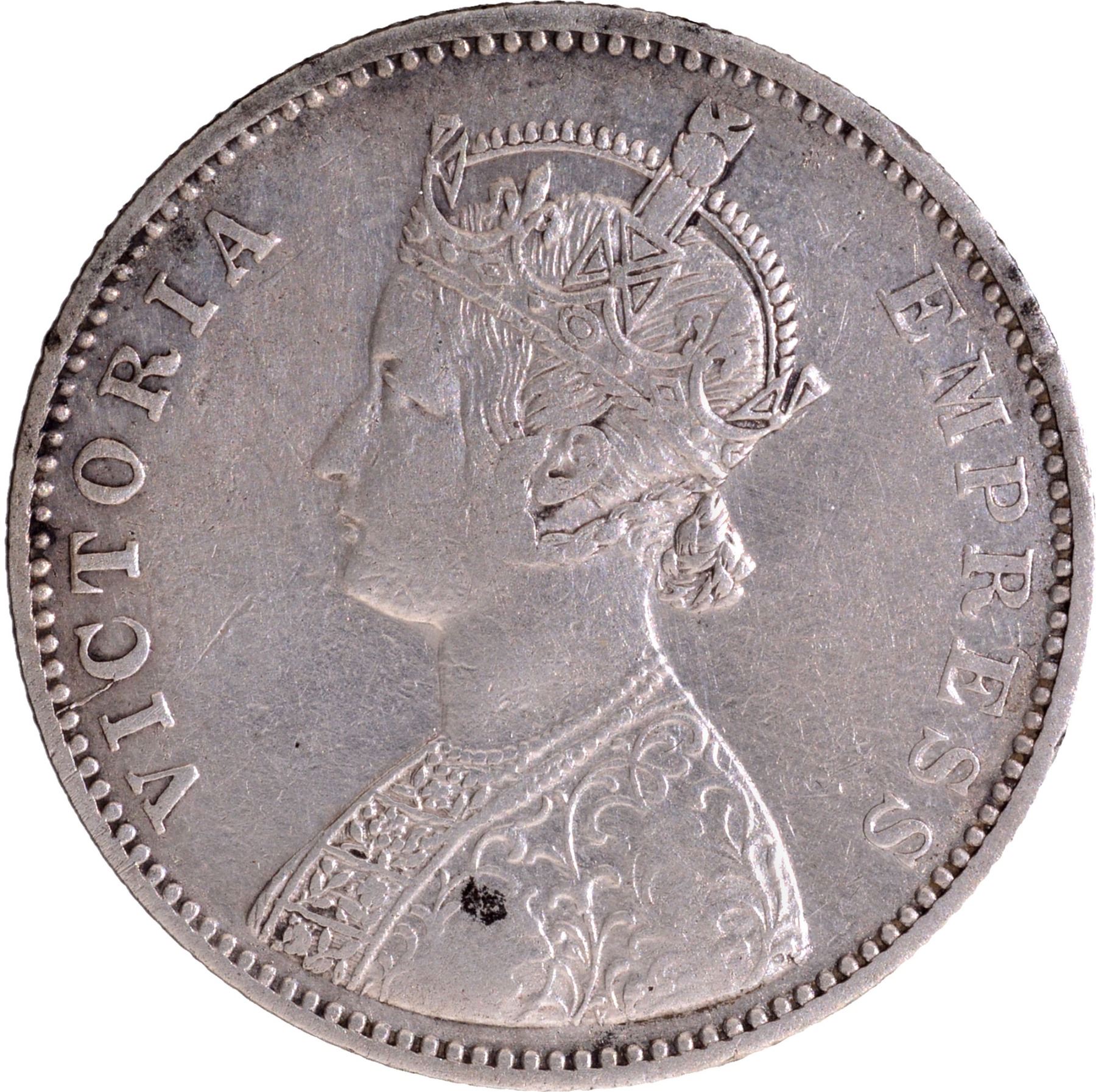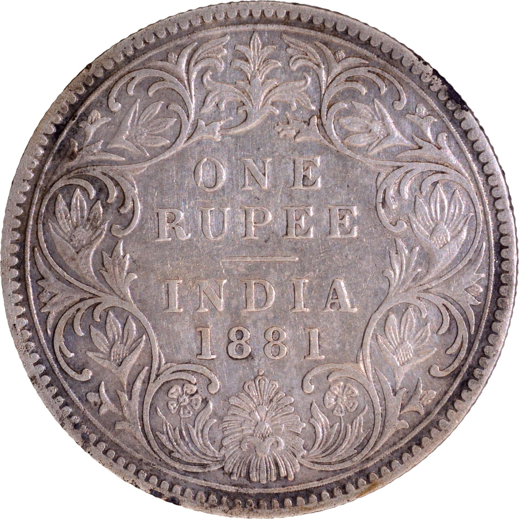 1881,Victoria Empress,Silver Rupee,Bombay Mint,A3/I/dot, (PR # 158/GK # 470),about very fine, Scarce.