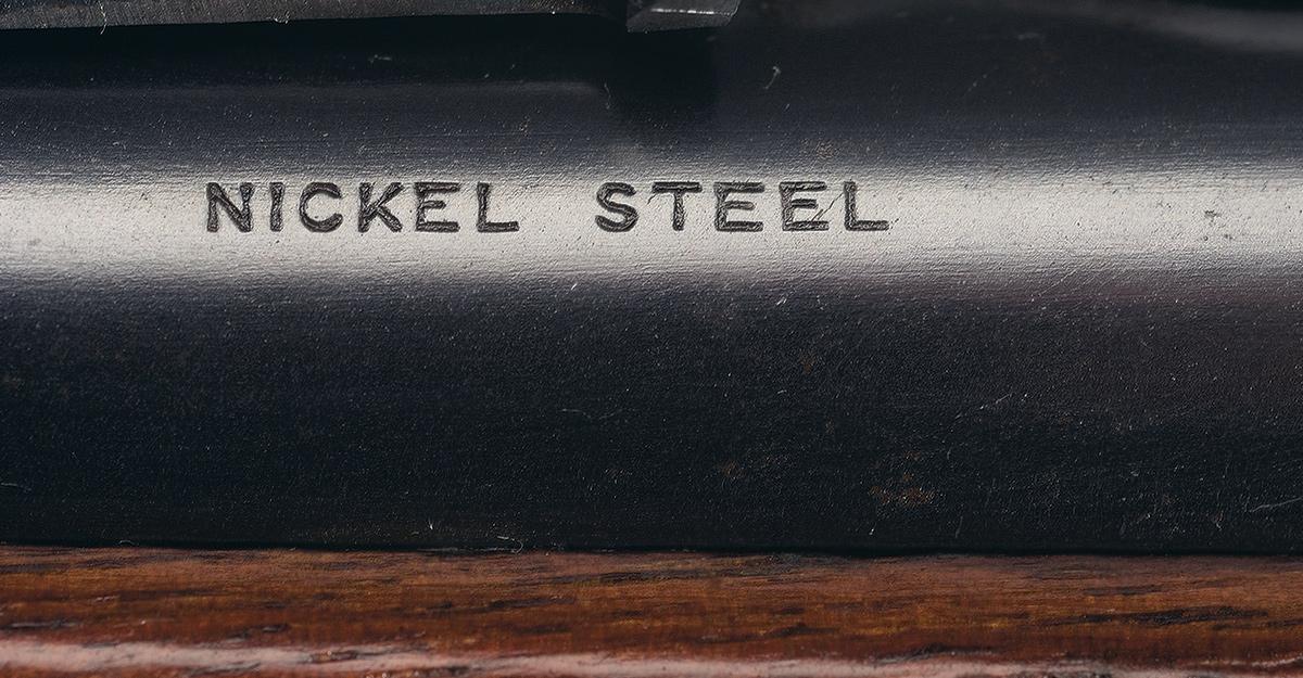 Winchester Model 1886 Extra Light-Weight Takedown Rifle manufactured in 1903. The rifle has the detachable 'takedown' 22-inch round, nickel steel, barrel and full-length magazine. The barrel has a Lyman "Hunting" front sight with ivory bead and a sporting style rear sight. The stock has a shotgun butt with hard rubber buttplate. The buttplate is checkered and has the round Winchester logo in the center. The stock and forearm are straight grain walnut with a varnished finish. The barrel, magazine tube, forearm cap and receiver have a high polish blue finish. The hammer and loading lever are color casehardened. The loading gate has a niter blue finish. The top of the barrel is roll-stamped: "MANUFACTURED BY THE/-WINCHESTER REPEATING ARMS CO.NEW HAVEN. CONN.U.S.A-" in two unequal lines ahead of the rear sight. "NICKEL STEEL" is roll-stamped on the left side of the barrel below the rear sight and "45-70" is stamped on the top of the barrel between the rear sight and the receiver. The upper receiver tang is roll-stamped: "- MODEL 1886 -". The lower receiver tang is roll-stamped: "PAT.OCT.14.1884/JAN. 20. 1886." in two lines behind the trigger. The serial number, "130790" is stamped ahead of the rear tang screw.