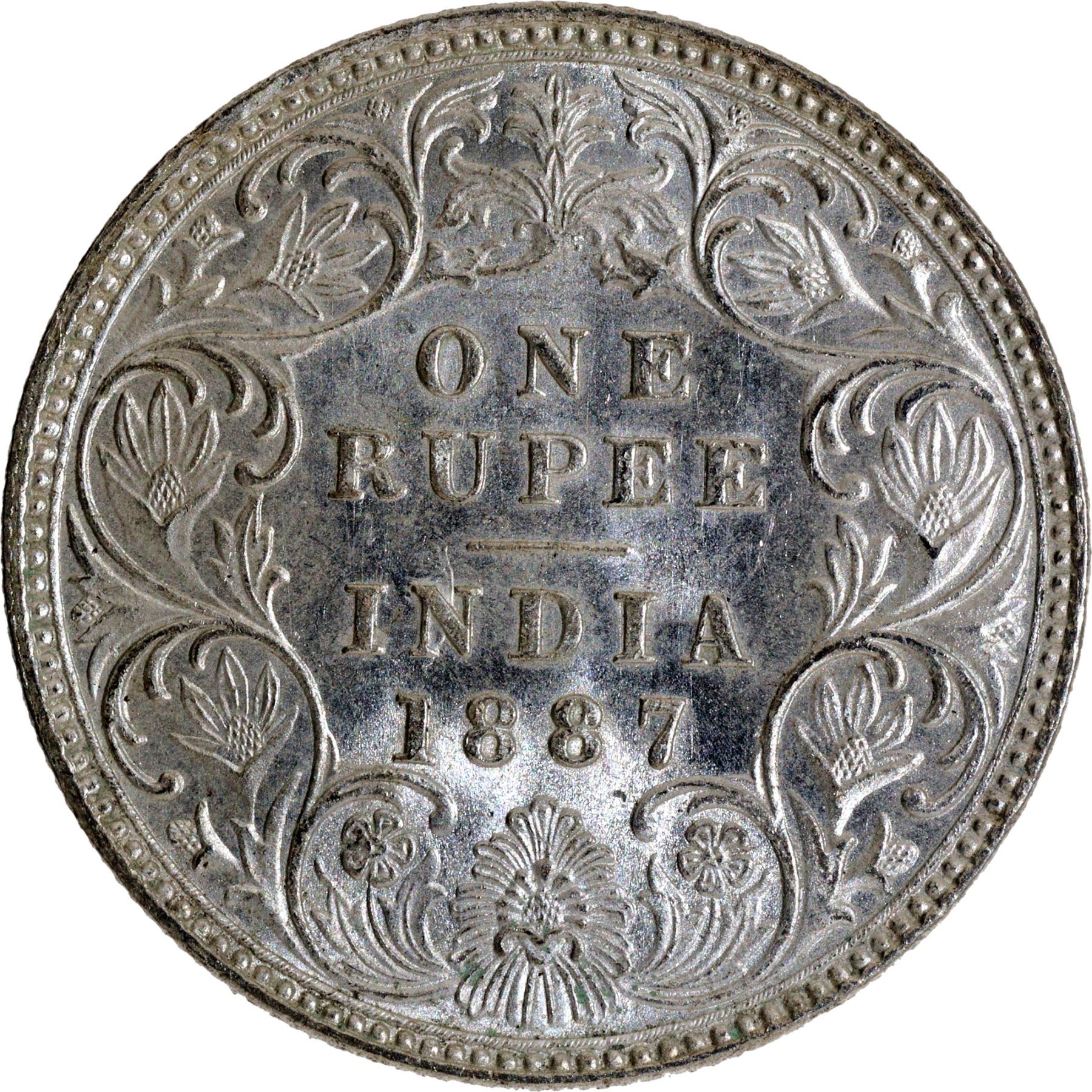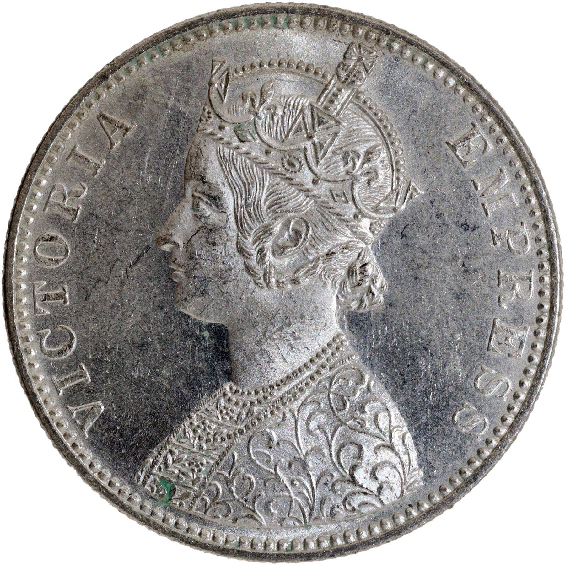 1887, Victoria Empress, Silver Rupee, Bombay Mint, C2/I(ii)/B incused inverted, (PR# 173/GK # 546), ghost image visible, strong features, UNC, Scarce.