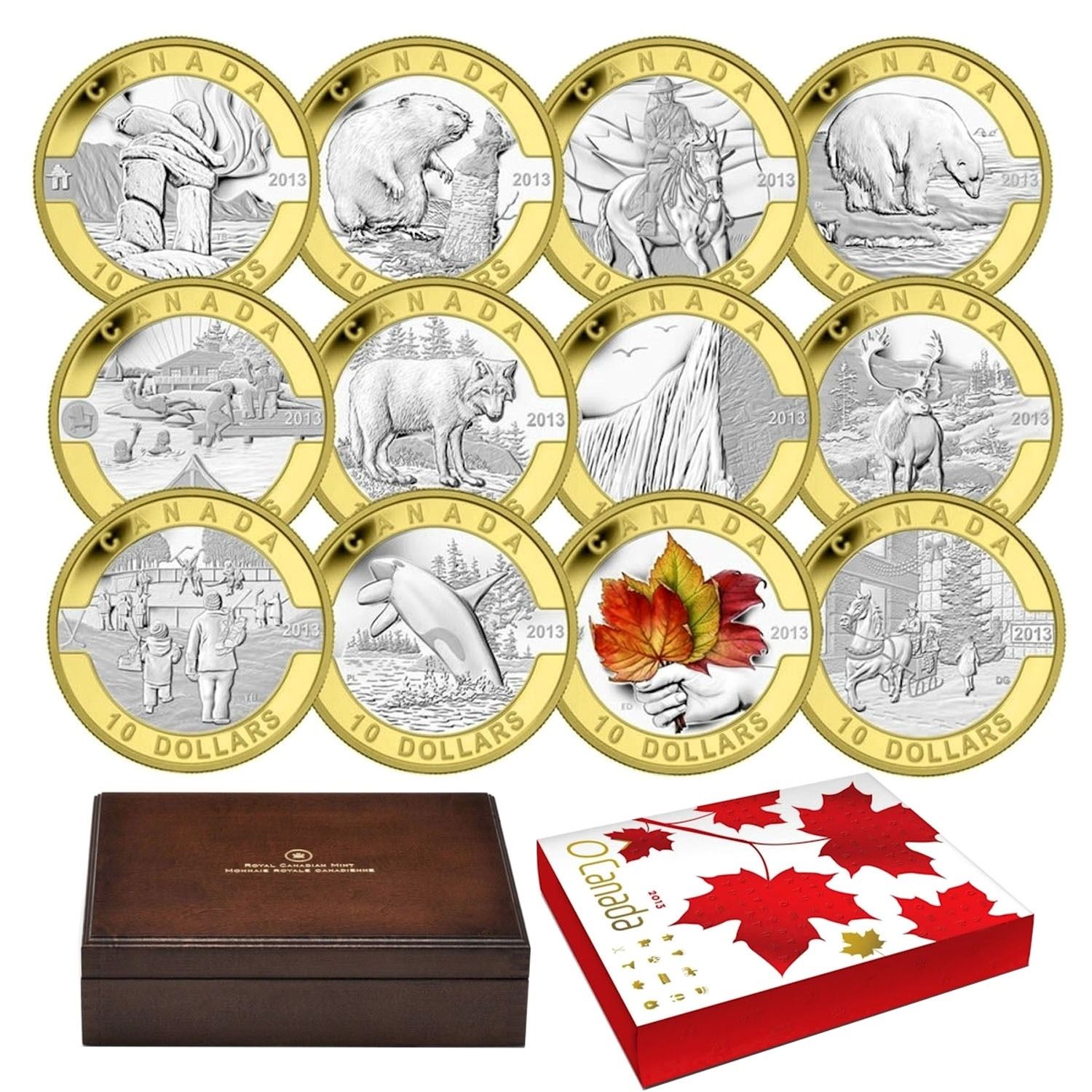 Scarce Version; 2013 $10 O Canada 12-coin Fine Silver Set with Selective Gold Plating in Deluxe Display Box. Mintage of only 1500!!! (TAX Exempt)