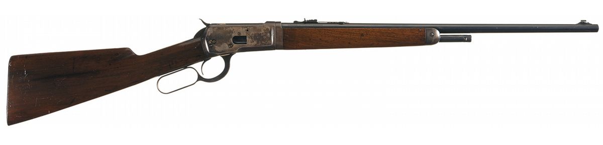 Manufactured in 1927, and features a blade front sight with brass bead and adjustable sporting rear sight and half magazine. The barrel is marked with the two line address on the right rear, model, trademark, "NICKEL STEEL" and "25-20 W.C.F." legend on the left side and standard three line trade mark marking on the upper tang, the Winchester oval proof on top of the barrel and receiver at the breech and the serial number on the bottom of the receiver. Smooth forearm and straight grip stock with serrated shotgun buttplate. Comes with four 50 count boxes of Remington 25-20 WCF ammunition.