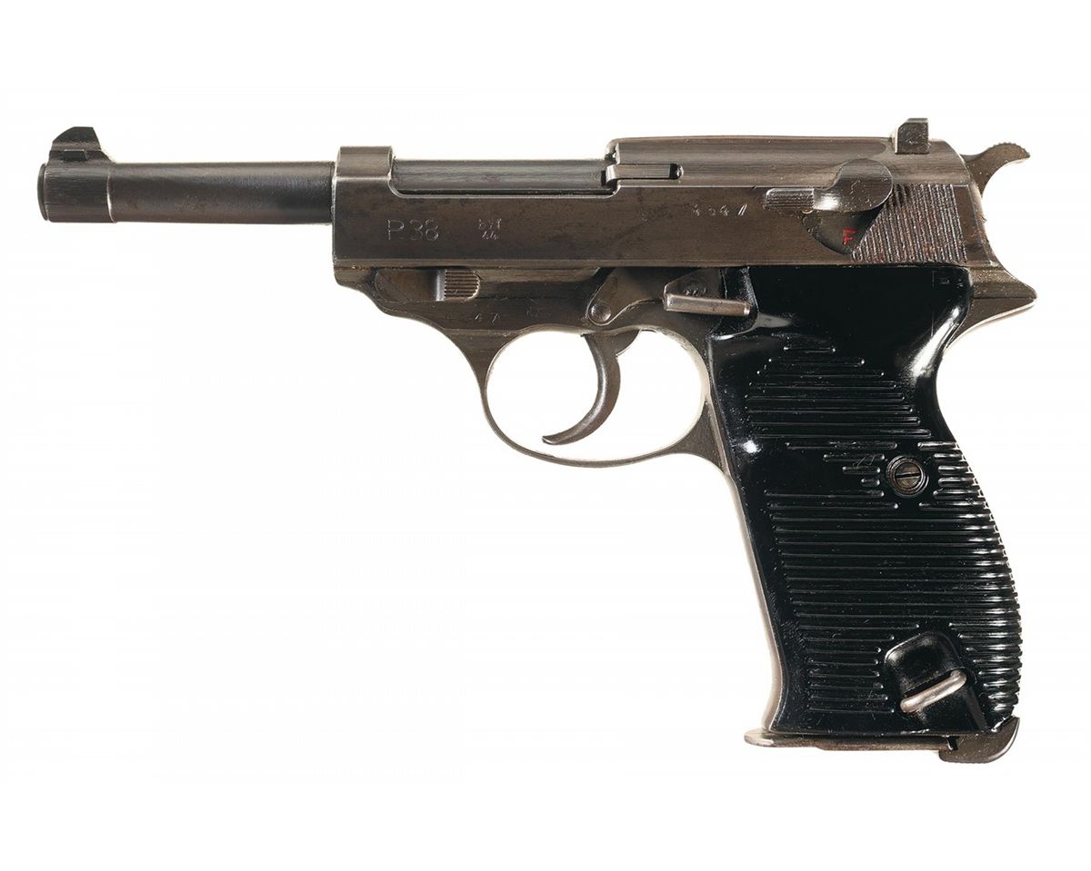 According to P38 expert and author Warren Buxton, approximately 872 "Eagle/F" police proofed P38 pistols were manufactured. "Eagle/WaA135" proofs are present with commercial "Eagle/N" proofs on the slide and barrel lug and a police "Eagle/F" proof on the right side of the slide. Phosphate finish with blue barrel. The mix of Waffenamt and commercial/police proofs is due to the fact that Waffenamt inspected components were made available to police inspectors based on requirements at the time. All parts began as military components. Visible numbers match, ribbed grips and magazine with an "Eagle/WaA135" proof on the spine.