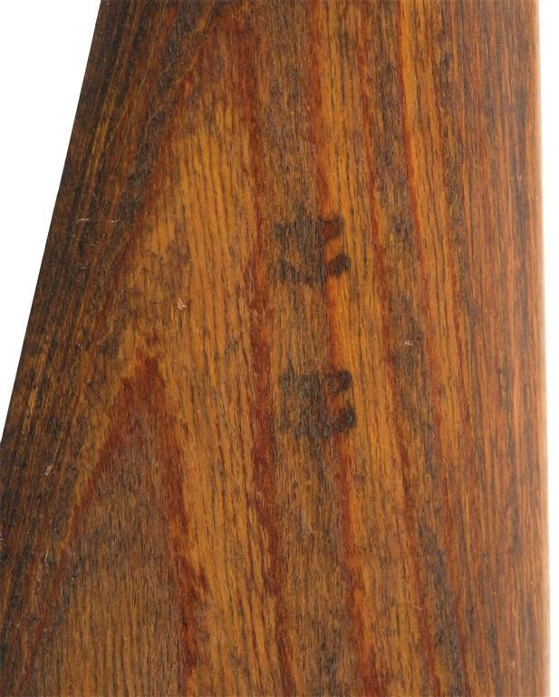 Very fine with 85% of the blue finish remaining, mostly on the protected areas of the rifle with the exposed barrel having a silver/gray patina finish with thinning on the action cover. The stock and handguard are both very good with visible stock proofs, with handling marks and scratches overall from use. Mechanically fine.