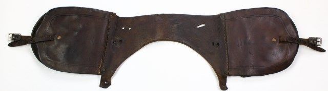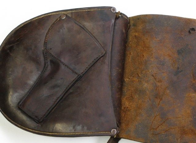 Helena, Montana Territory. Stamped on both outer flap, bags feature pistol pouch on right side inner and document pouch on left side. Est. 800-1500