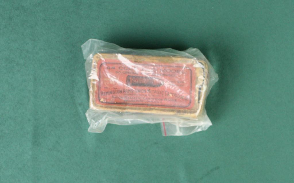 Scarce picture box of .44 Colt (Old Model) 50  Center Fire Cartridges by Remington/UMC in  overall fair plus condition showing the  majority of lid label, bottom guarantee label  and three of the four side panels.  Est.:$200-$400.