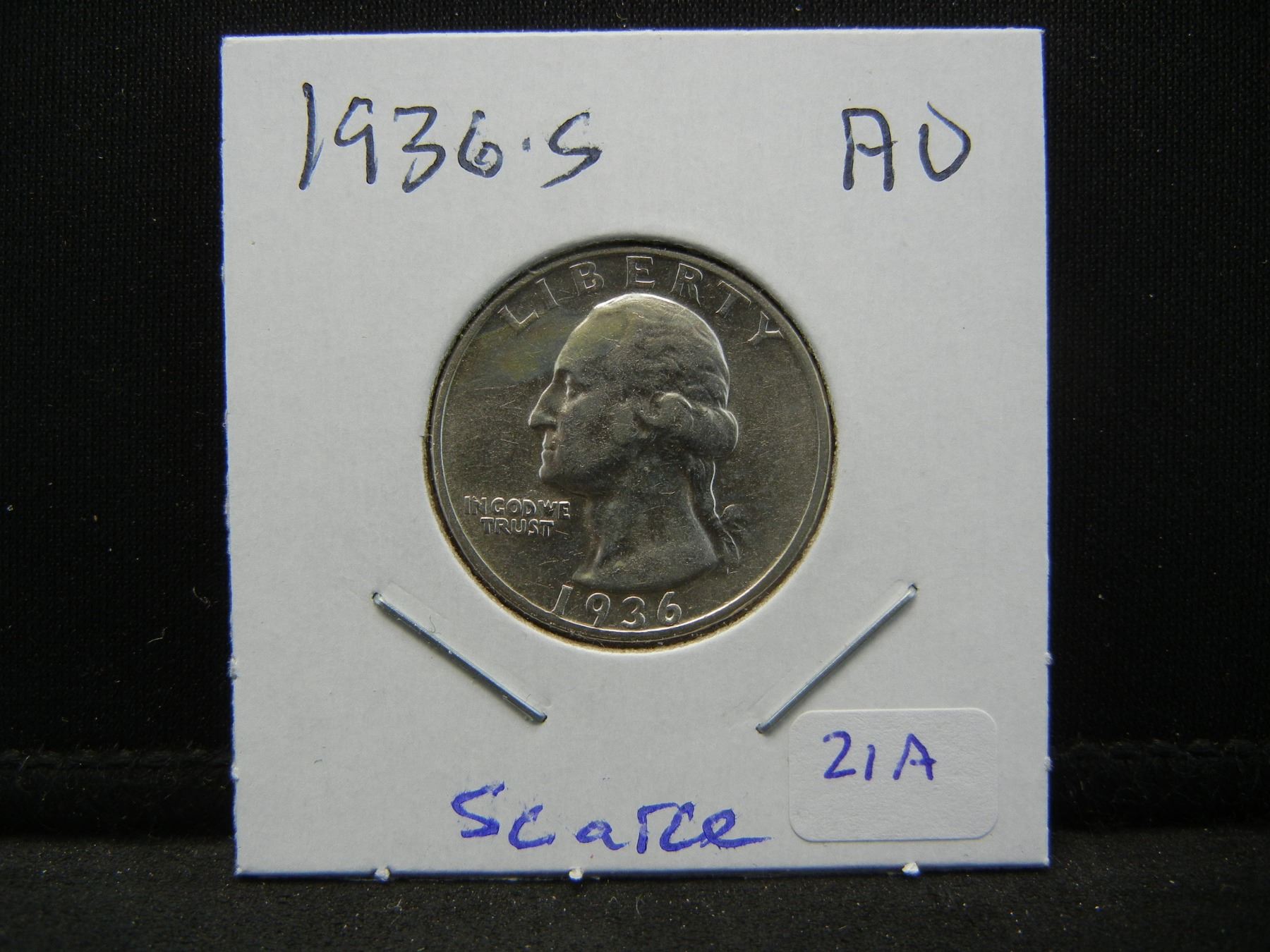 Scarcity ALERT. 1936-S Washington Quarter, Choice AU. Hard to find.